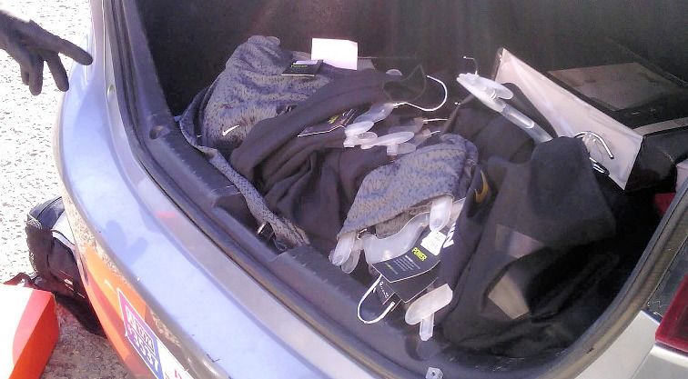 כוח משטרה שהגיע למקום, מצא ברכבו של החשוד סחורה בשווי של אלפי שקלים שעל פי החשד נגנבה מחנויות שונות.