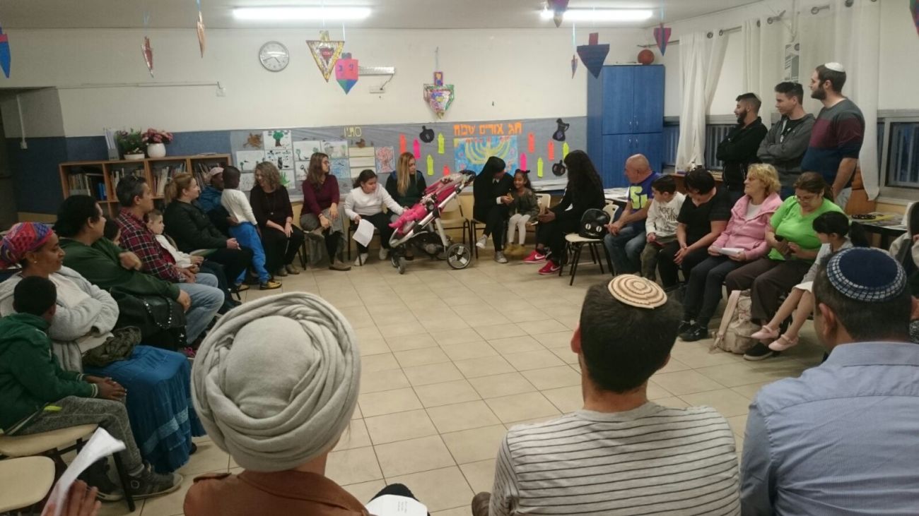 מסיבת חנוכה הורים וילדים במועדונית בשכונה.