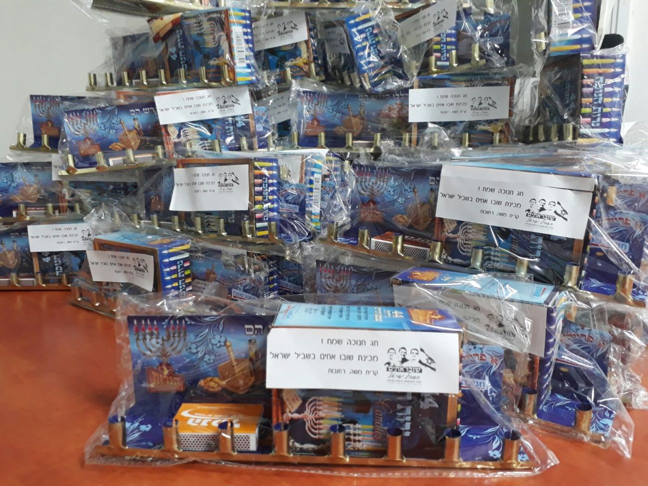 50 חנוכיות ארוזות מחכות להדלקת נרות בבתי השכונה בשיתוף תלמידי המכינה הקדם צבאי וכפר הסטודנטים בשכונה. כאשר השיא יהיה- הגעה להדלקה בבית שאותו שיפצו התלמידים במהלך החודש האחרון.