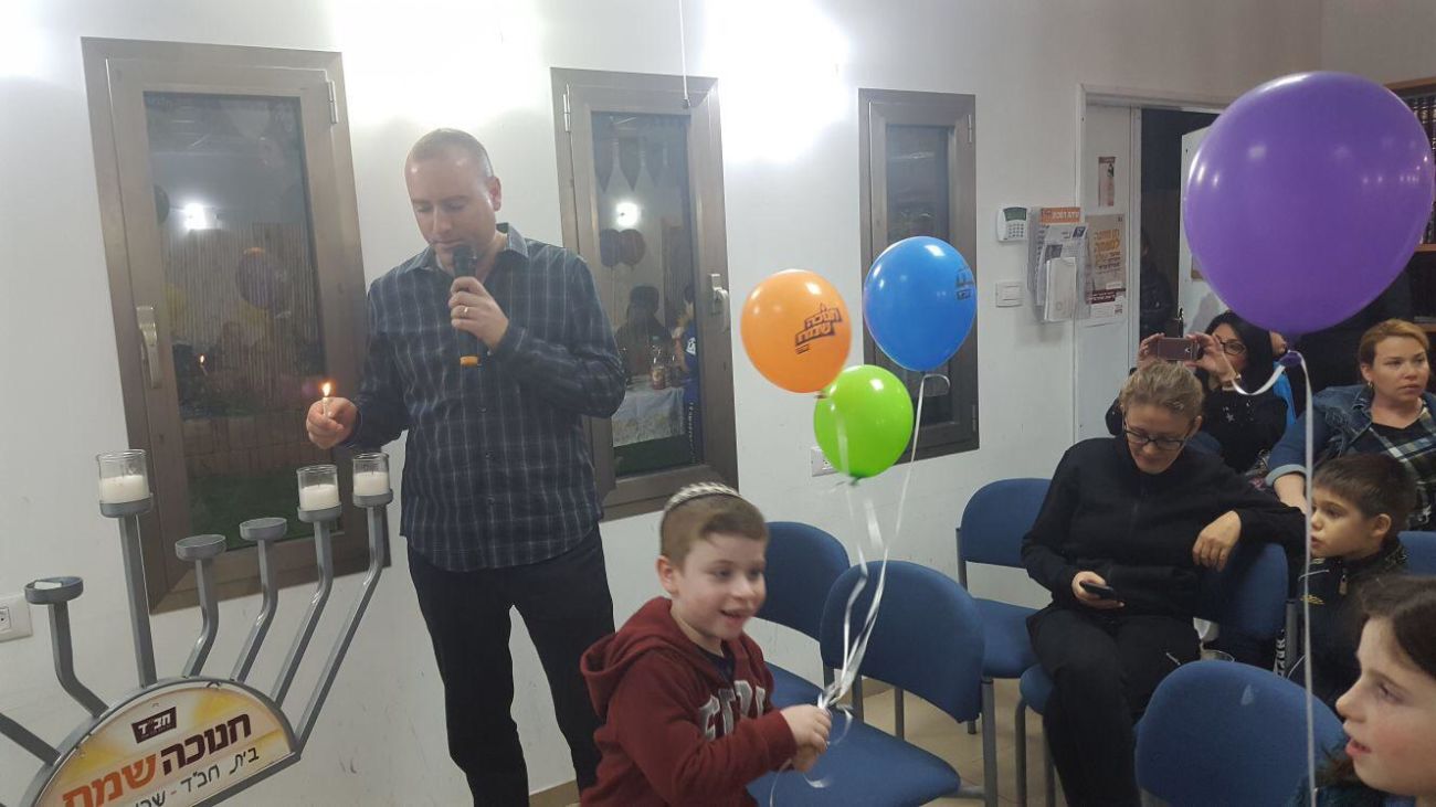 סגן ראש העיר מתן דיל הדליק נרות גם במסיבת חנוכה שכונתית בבית הכנסת אוהל מנחם בשכונת מגוריו, רחובות המדע, בצוותא עם משפחות תושבי השכונה וילדיהם.