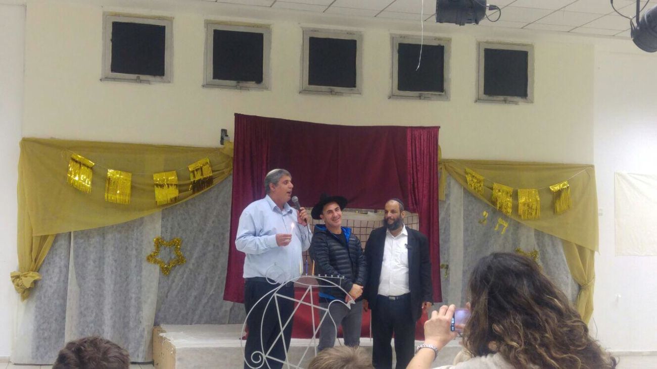 סגן ראש העיר ומחזיק תיק החינוך זוהר בלום הדליק נר שלישי בערב מרגש במועדון אקים ברחוב מוטה גור יחד עם משפחת בי״ס שז״ר שהגיעה לשמח אותם.