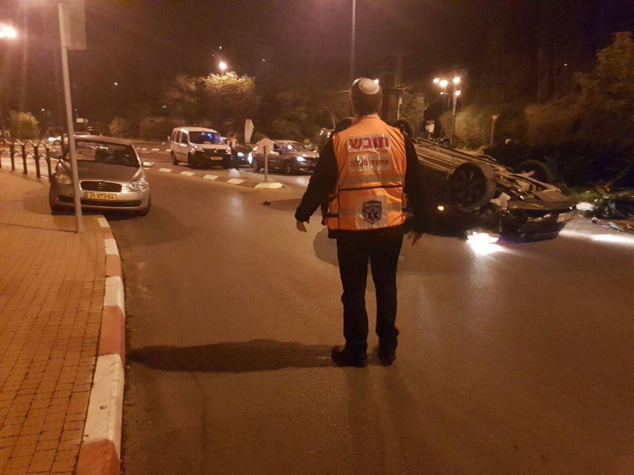 מבזק תאונה מהלילה: רכב התהפך פצוע קל - בינוני