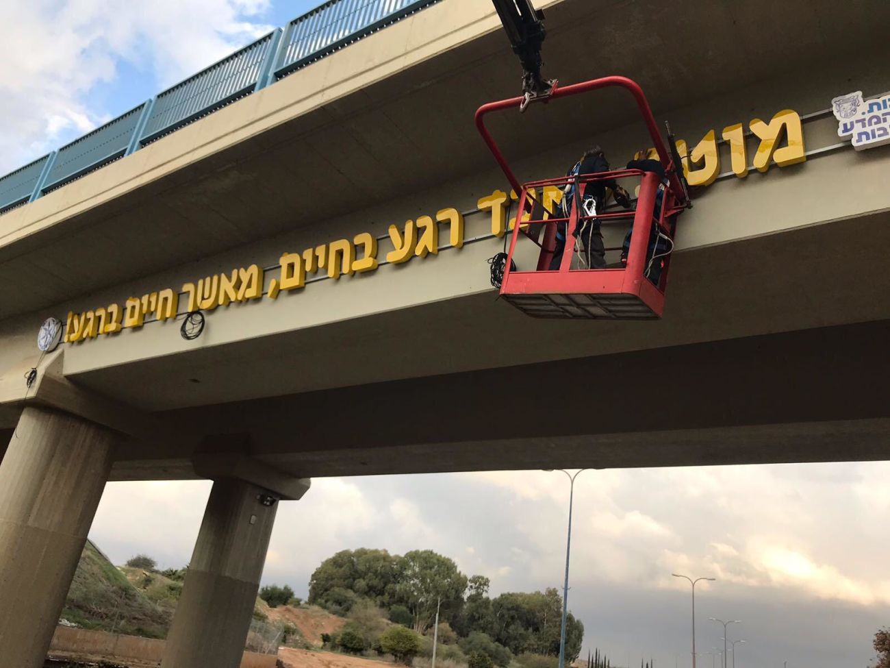 מרגע ההחלטה אגף תנועה, שילוט ופיקוח ביצע במהירות את התקנת האותיות על הגשר, אשר מוארות גם בשעות החושך.