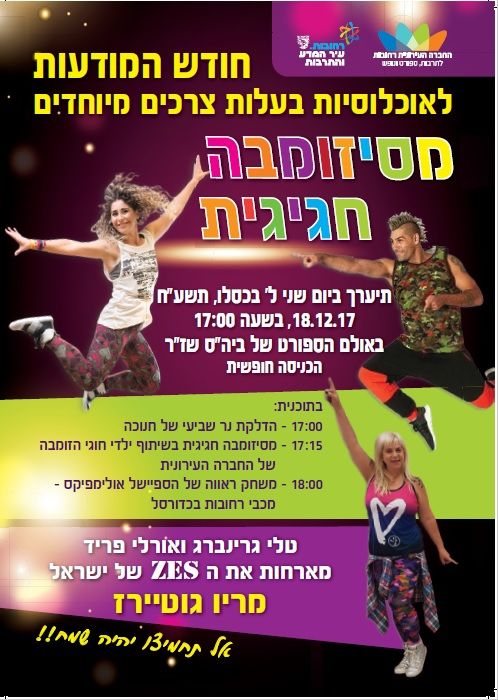 ביום שני (18.12), במסגרת ציון חודש המודעות לאוכלוסיות בעלות צרכים מיוחדים, יתקיים אירוע מרגש ומיוחד באולם הספורט של בית הספר שז"ר בהשתתפות ילדי העיר שלוקחים חלק בפעילויות שמציעה החברה העירונית לתרבות, ספורט ונופש רחובות.
