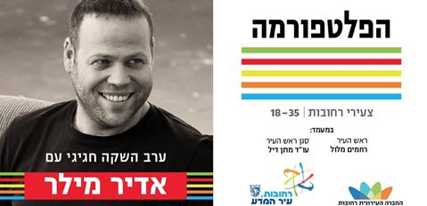 המופע עם אדיר מילר במעמד ראש העיר יתקיים ביום רביעי 27/12 בשעה 19:30 בהיכל התרבות רחובות והכניסה חינם.