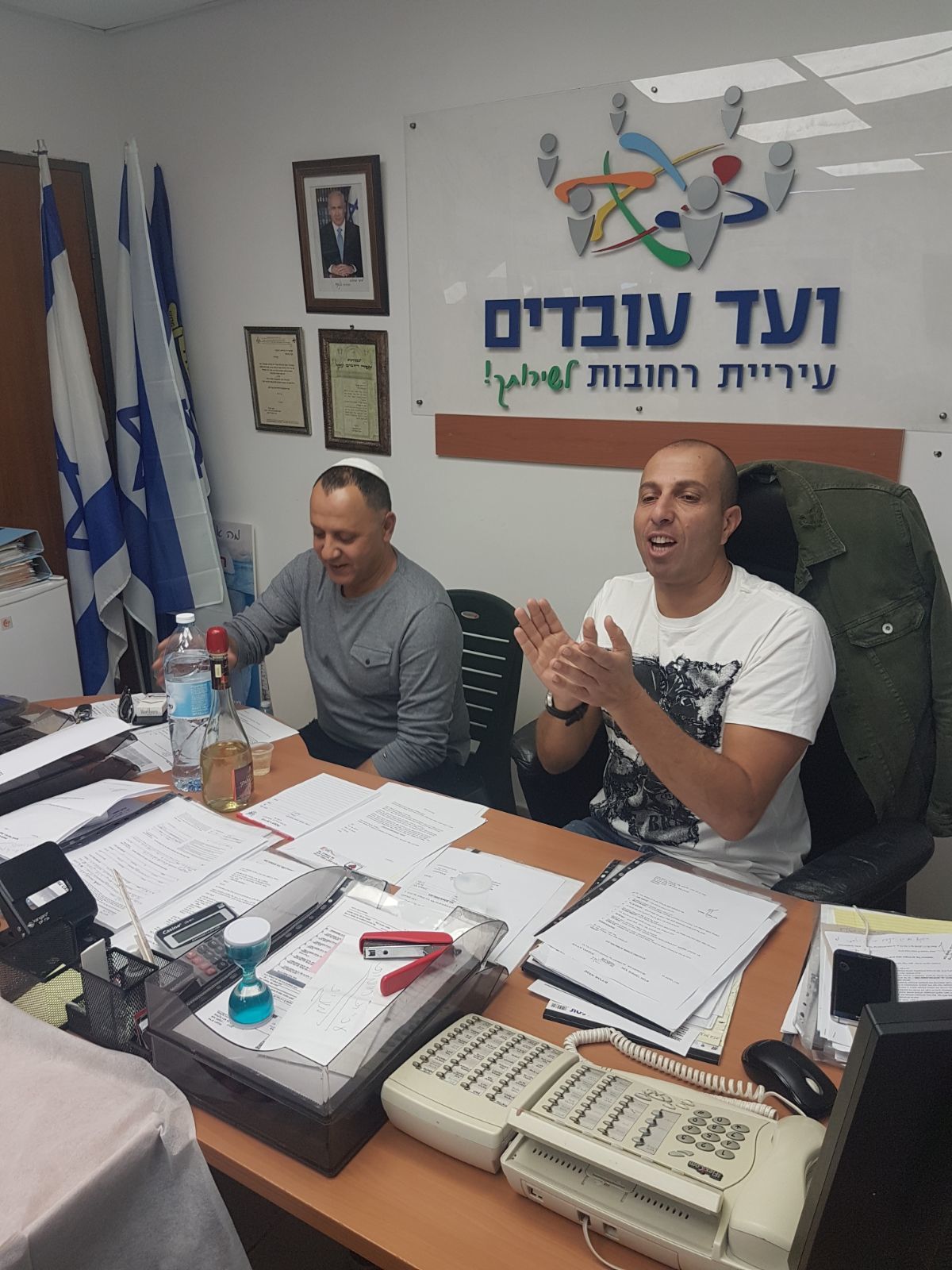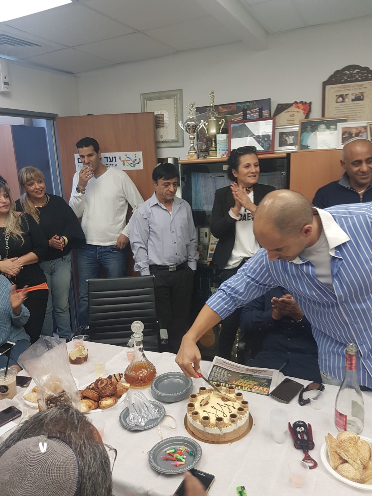 חגיגה הבוקר במסדרונות העירייה כאשר יו"ר העובדים רמי מדהלה, חבר המועצה אביב איטח, עובדי העירייה ובכירים הפתיעו וערכו מסיבת הפתעה צנועה לליאור שוקרי, יואב לוי ושלמה ידעי החוגגים יום הולדת