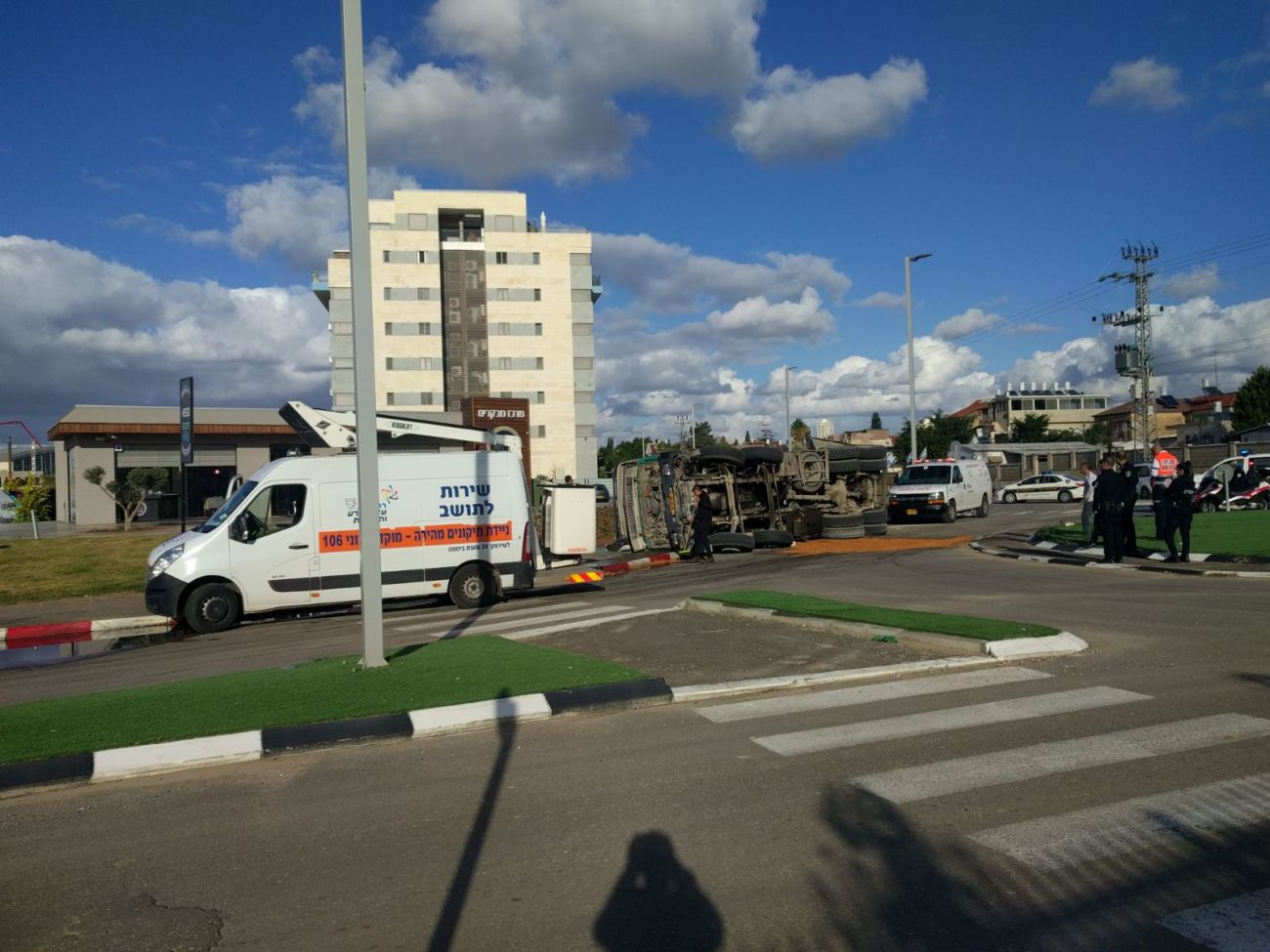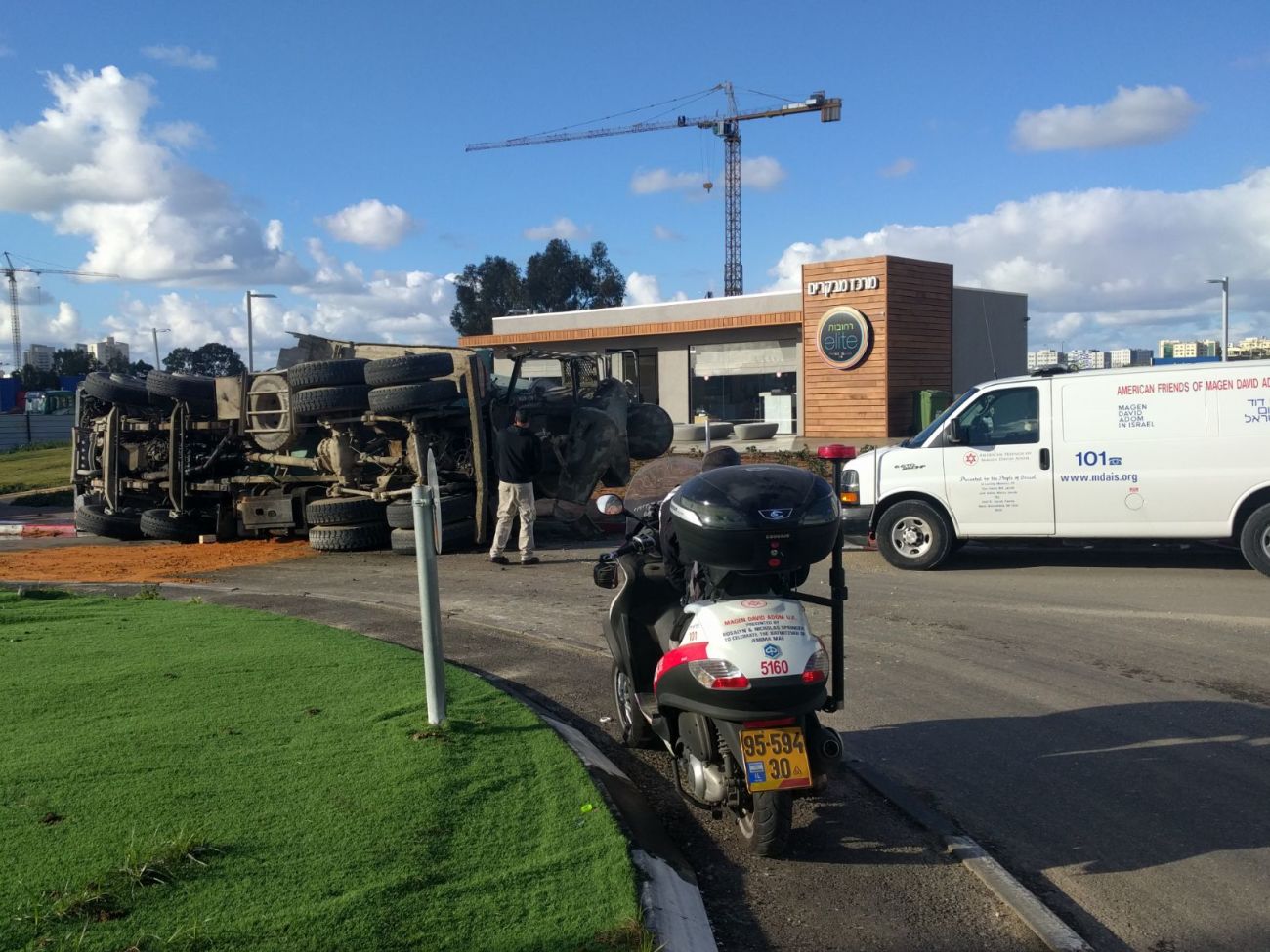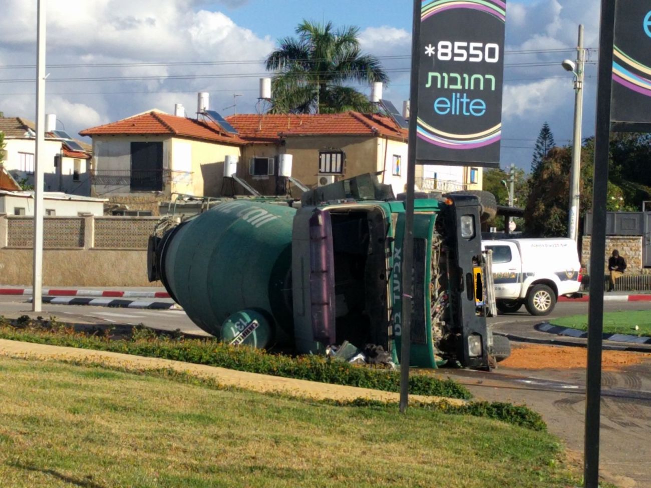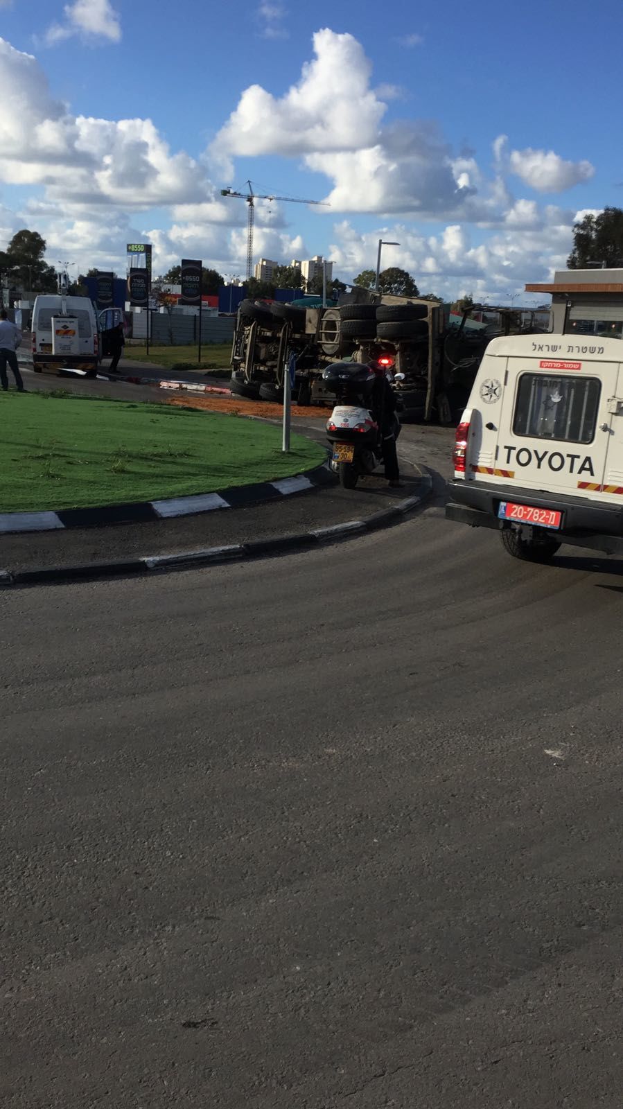 יום שני 25/12 שעה 14:20 ברחוב משה פריד ליד שכונת חצרות המושבה ברחובות. משאית התהפכה ללא נפגעים (דיווח על נהג פצוע קל מאוד)