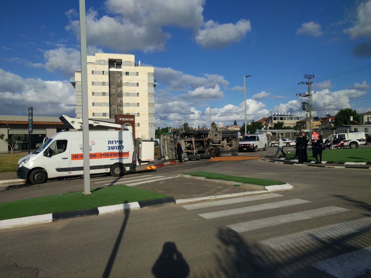 מבזק תאונה: משאית התהפכה, פצוע קל
