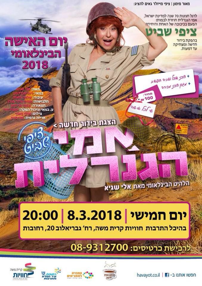 החלה מכירת כרטיסים לקומדיה המטורפת "אימי הגנרלית" עם ציפי שביט אשר תתקיים ביום האישה הבינלאומי 8/3 באולם חוויות קרית משה