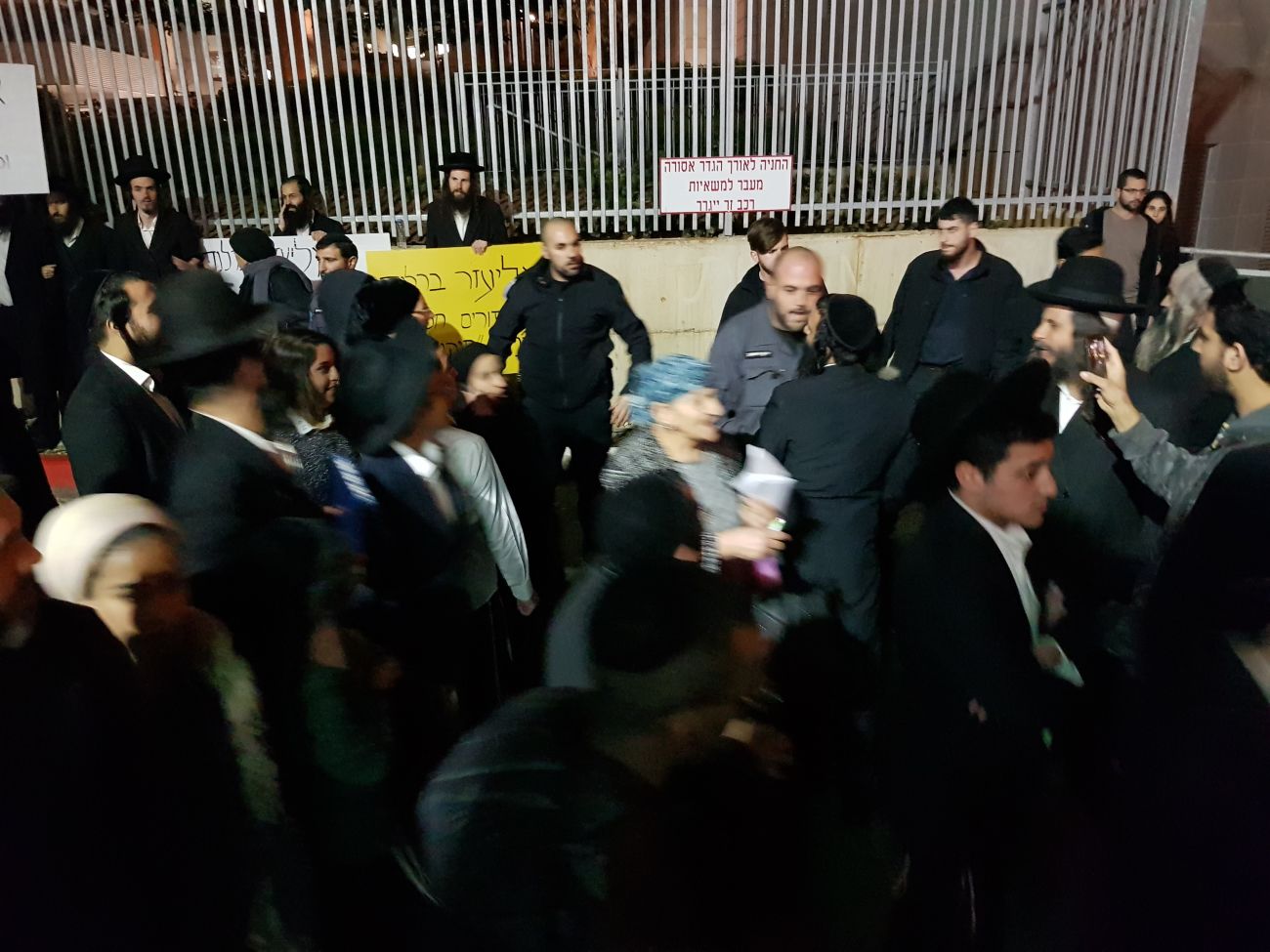 בין המפגינים נגד הרב בלטה קבוצת חרדים אשר הגיעה מירושלים עם שלטי מחאה