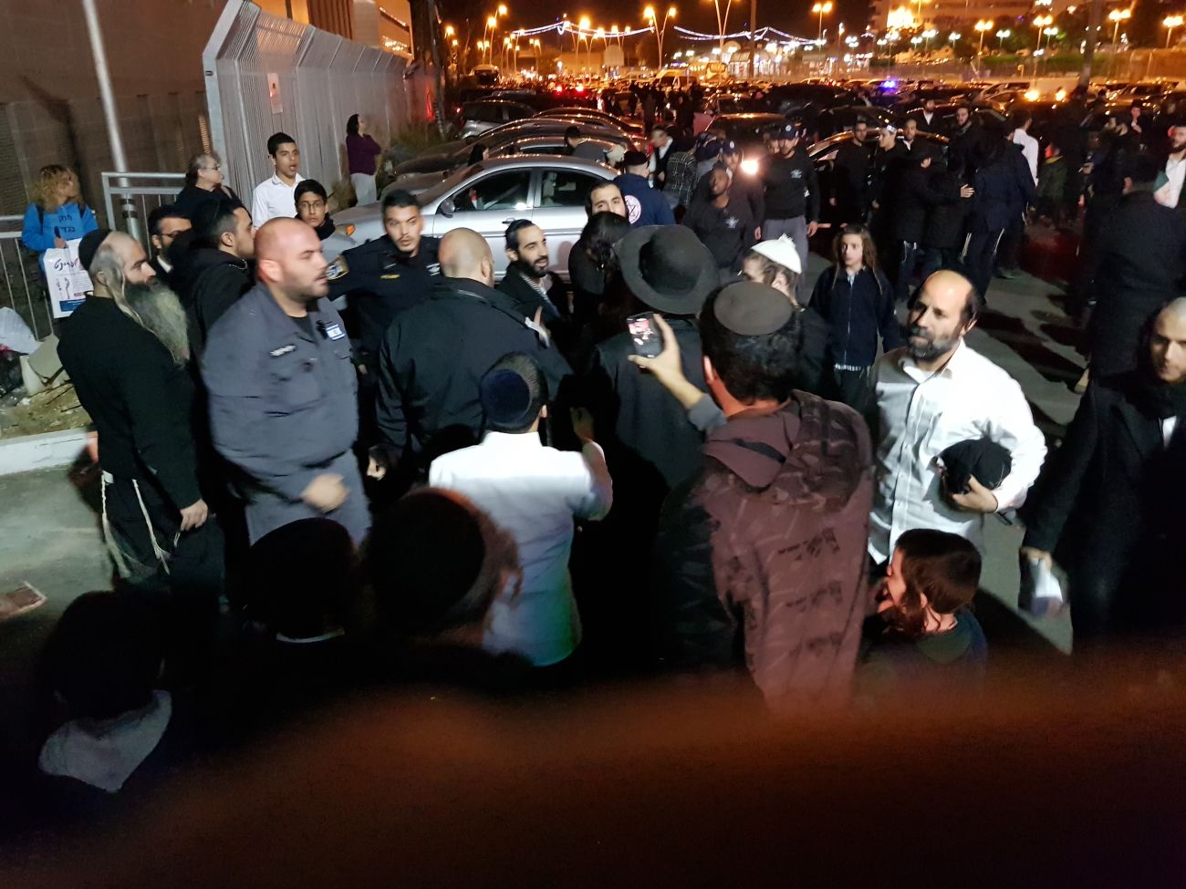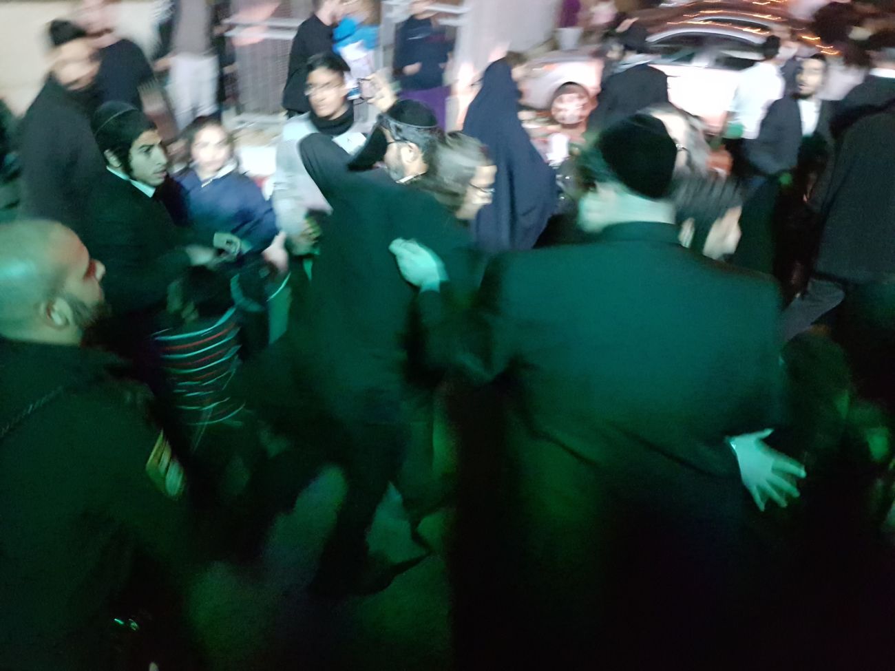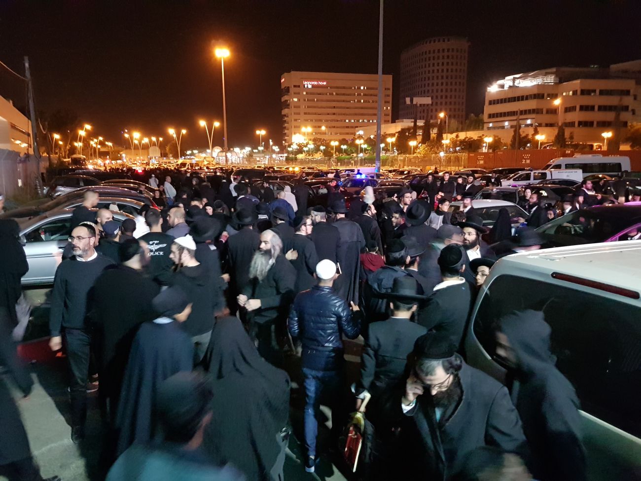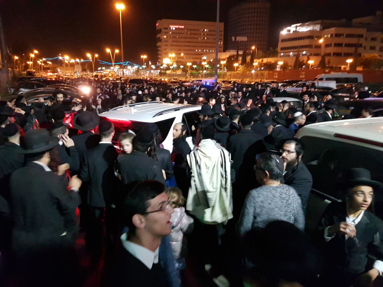 אכן בשעה 19:30 הם פרסמו כי הכנס יתקיים באולמי גושן ליד הרכבת ולמקום החל לזרום נהר של אדם ולהערכה 1500 – 2000 חסידים אולם גם מתנגדי הרב הגיעו למקום ובהם חברת המועצה יעל בק אך מי שהפתיעו הייתה קבוצת חרדים מירושלים אשר הגיעו עם שלטי מחאה נגד הרב ובינם לבין החסידים פרצו מידי פעם עימותים אך השוטרים שהיו במקום השתלטו במהירות על האירועים כדי שלא ייצאו מכלל שליטה.