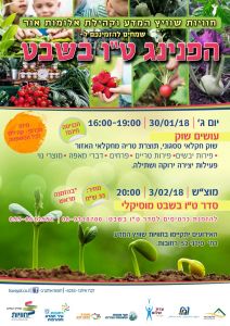 אורחוגם סדר ט"ו בשבט במוצש ושירי ארץ ישראל עם שולחנות כיבוד. כרטיסים ב 35 שח במכירה מוקדמת במתנ"ס חוויות שוויץ המדע