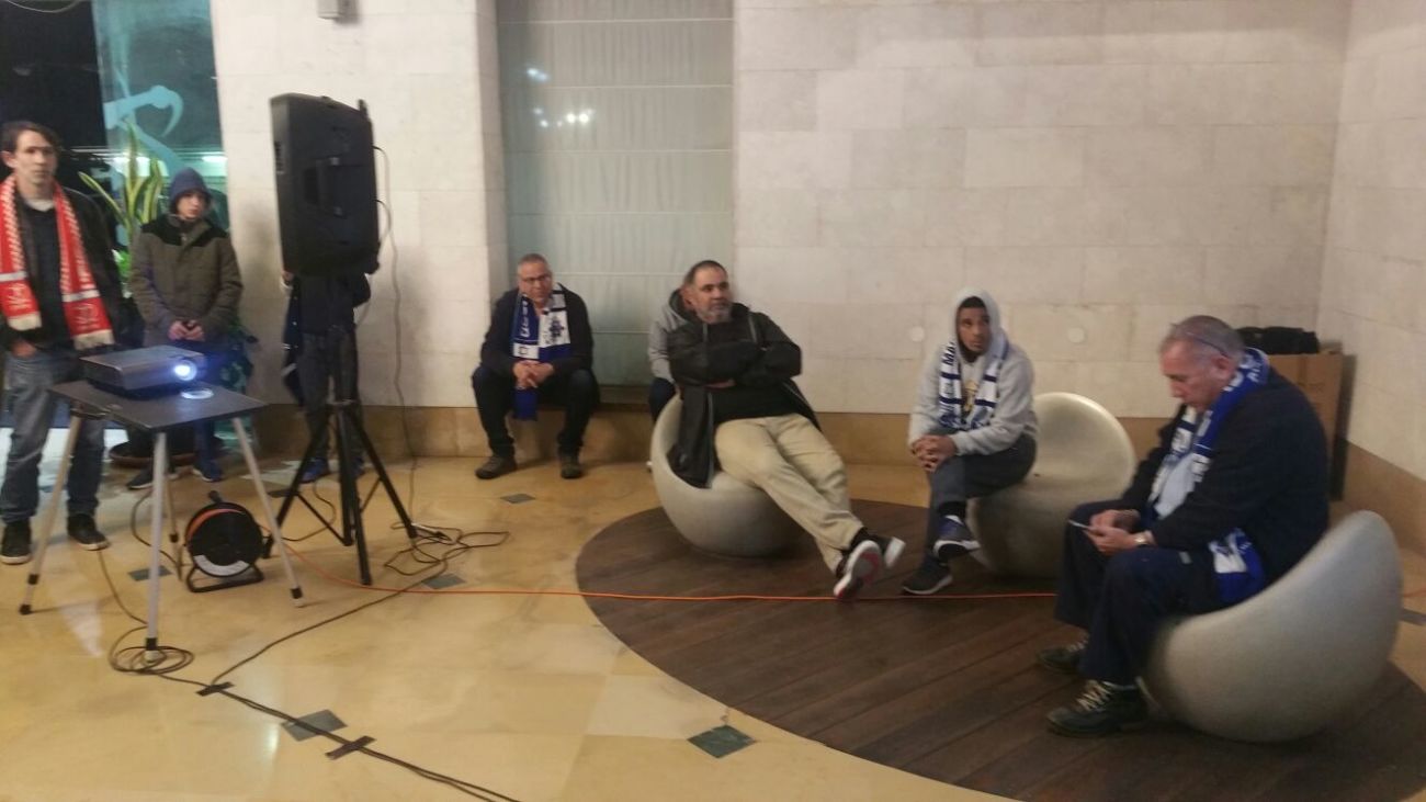 אולם האוהדים לא הורשו להיכנס לאולם הישיבות ונאלצו לצפות בדיון במקרן שהוצב עבורם בלובי העירייהלהצטרפות לוואטסאפ חדשות רחובות להצטרפות לקבוצת וואטסאפ ששולחת דילים וקופונים לאליאקספרס