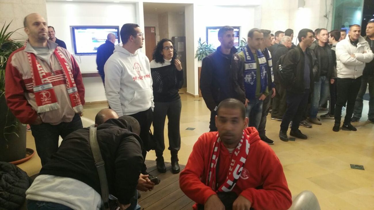 אתמול רביעי הגיעו עשרות אוהדים לבניין העירייה כדי לתמוך בהצעה להגדלת התמיכה באגודות הספורט