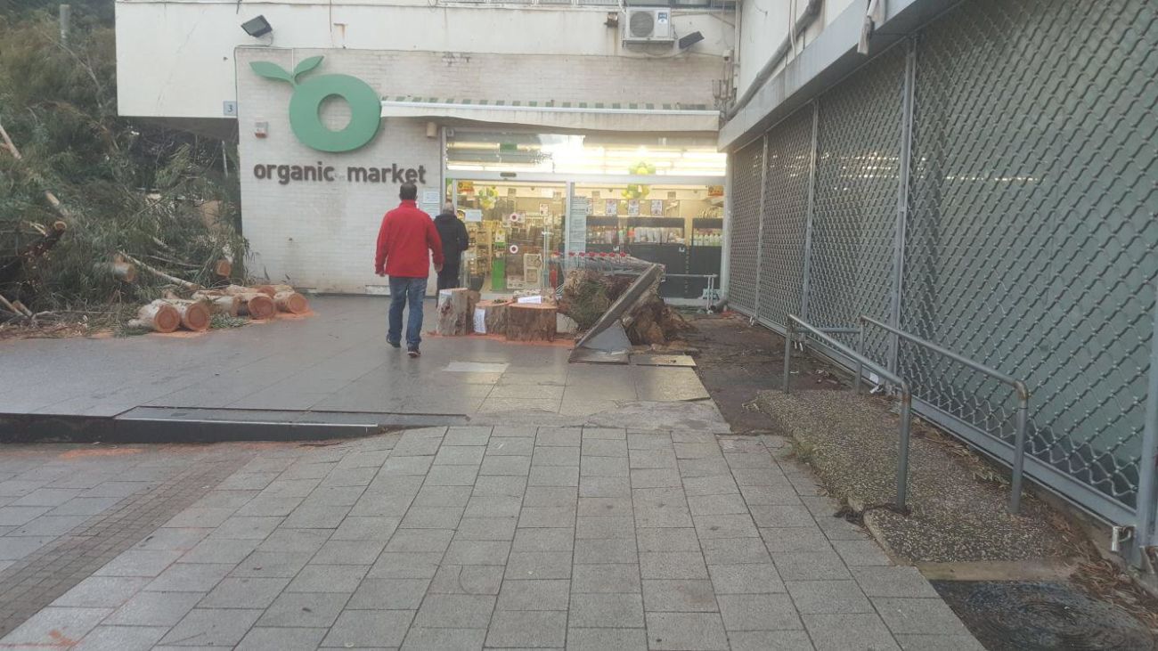 גנרל חורף! עץ ענק נפל במרכז המסחרי