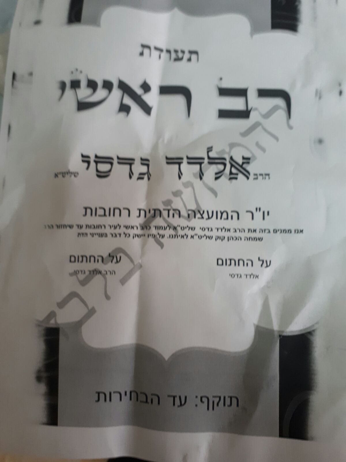 בימים האחרונים הופץ בתיבות הדואר במיוחד בשכונות החרדיות ברחובות פלאייר הבא לפגוע ביו"ר המועצה הדתית אלדד גדסי.