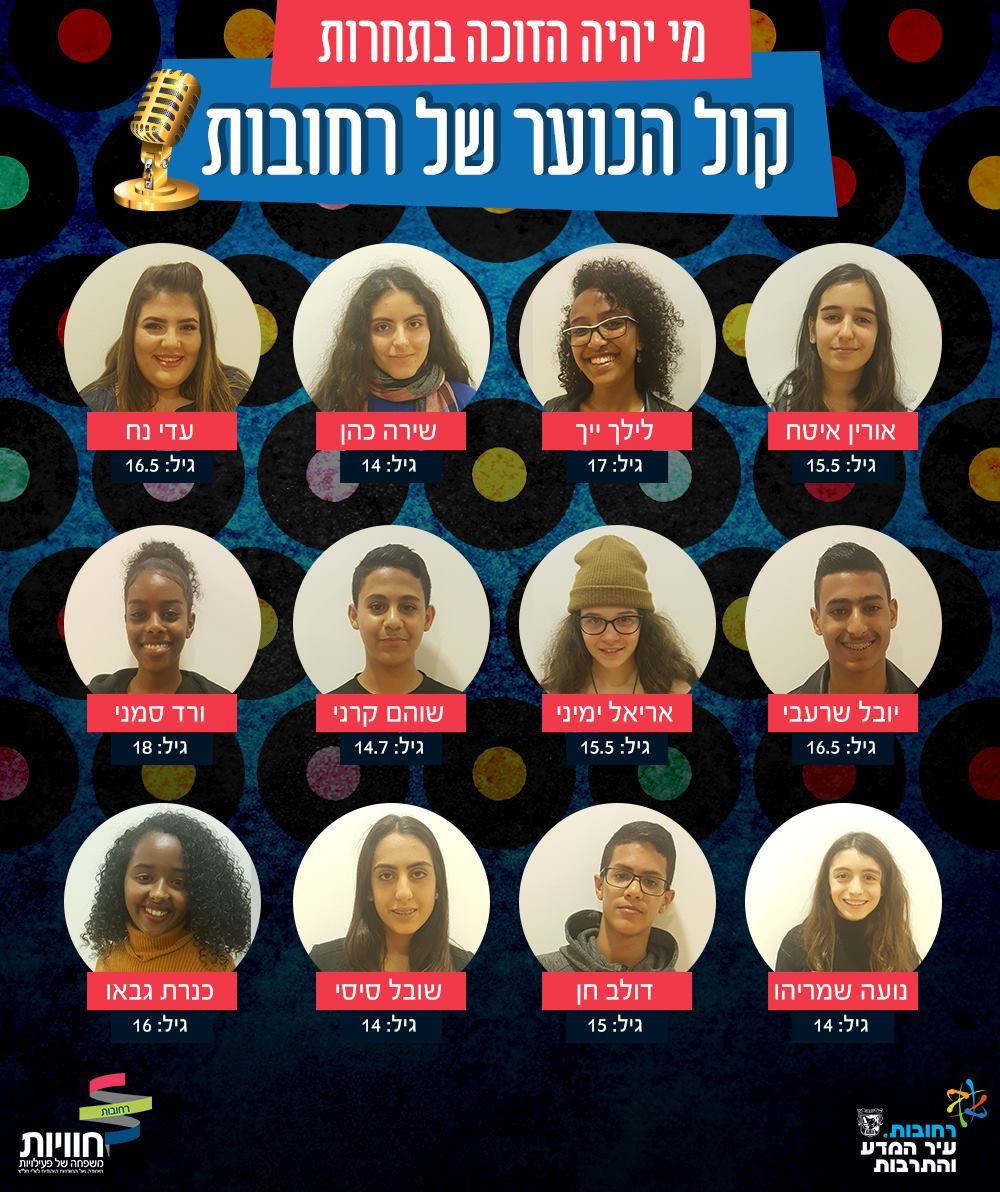 12 בני נוער עלו לגמר תחרות הזמר "קול הנוער" שתתקיים ביום חמישי 22/2 באולם חוויות קרית משה
