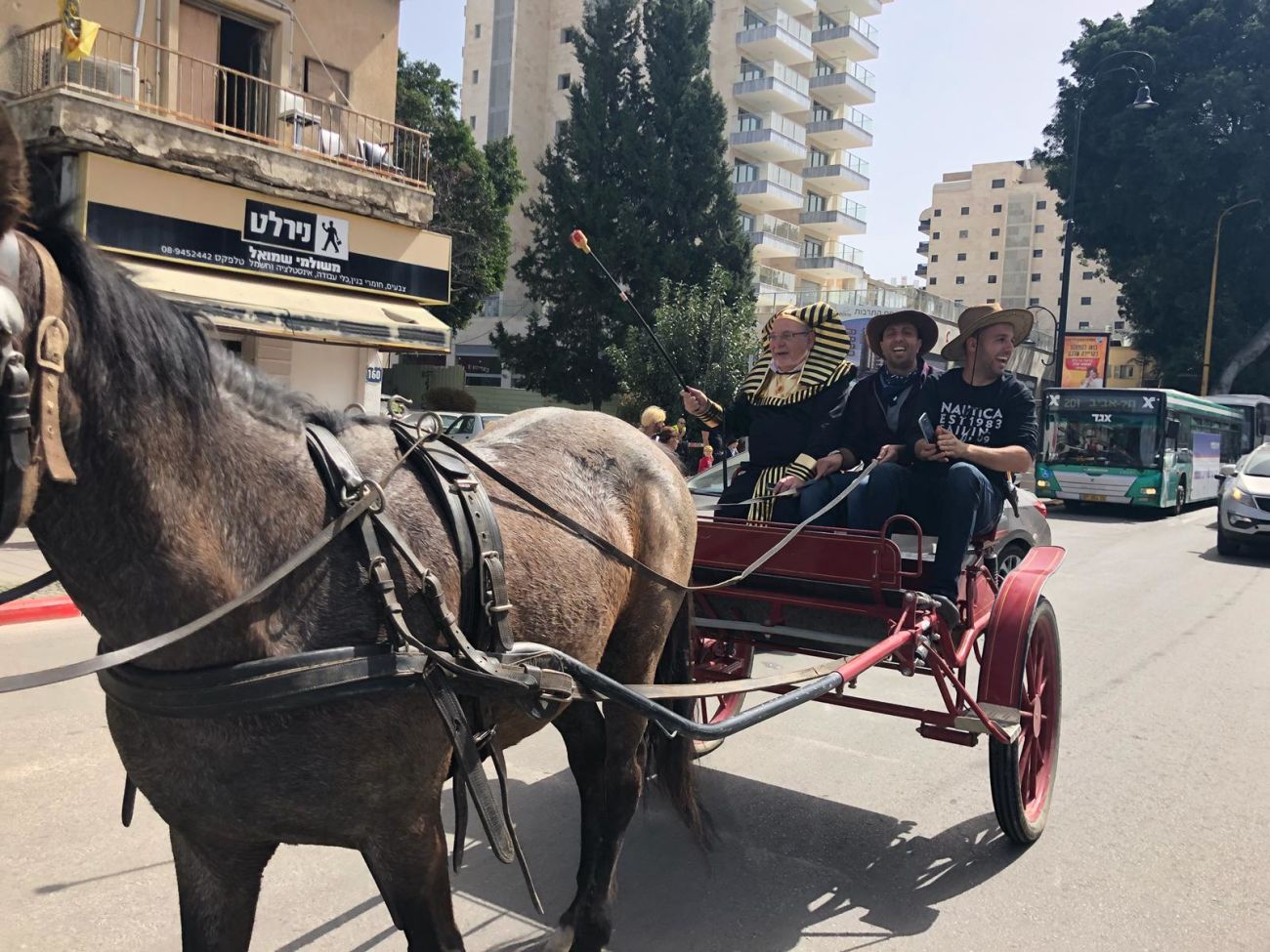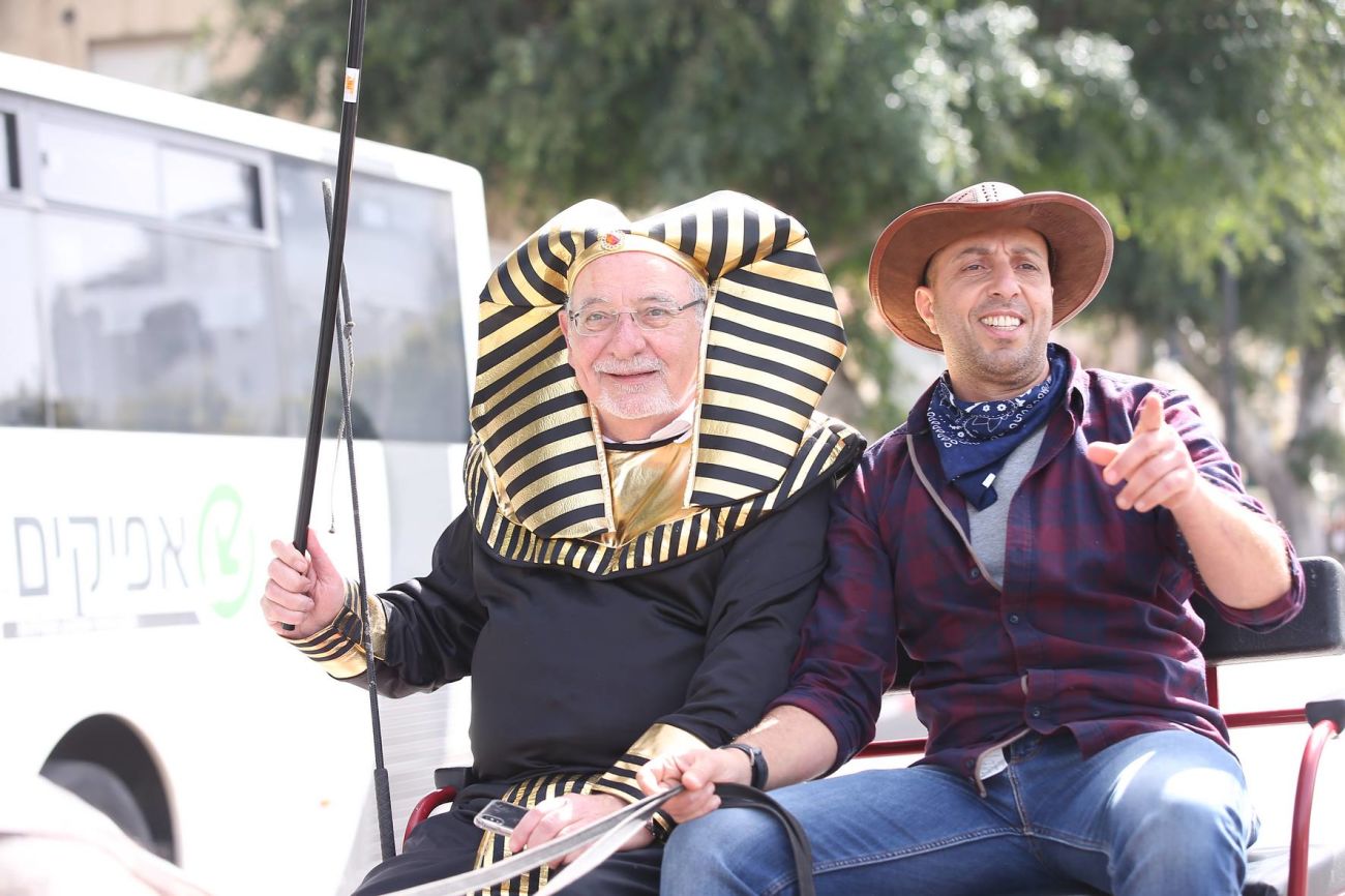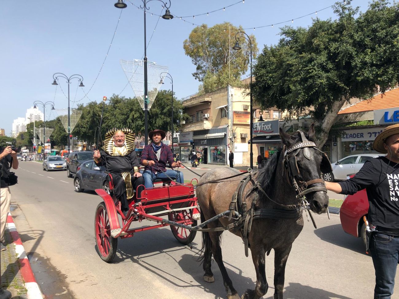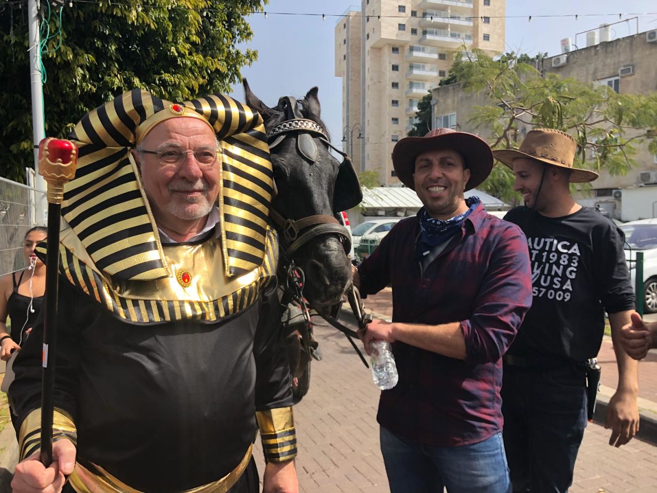 ראש העיר הפתיע בתחפושת של מלך מצרי והגיע למקום רכוב על כרכרה עם סוס, שהוביל יו״ר וועד העובדים, רמי מדהלה
