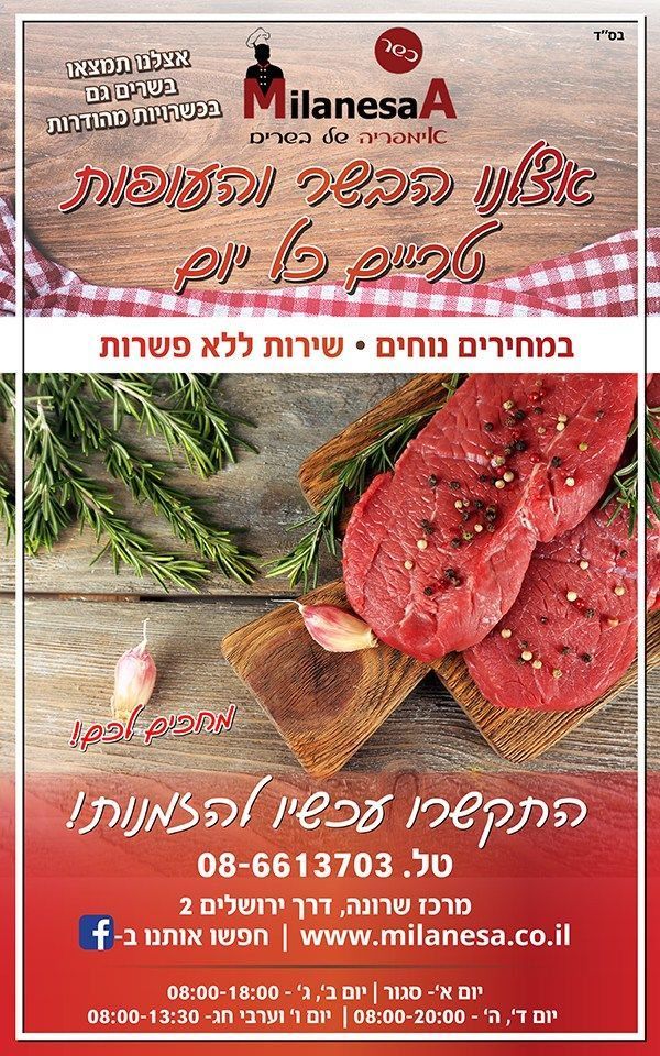 באדיבות חנות הבשר "מילנסה" במרכז שרונה ברחובות התמונה להמחשה בלבד.