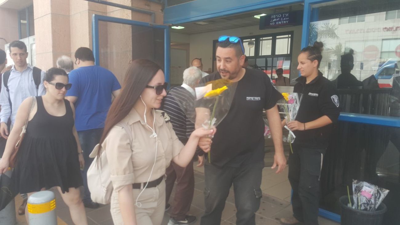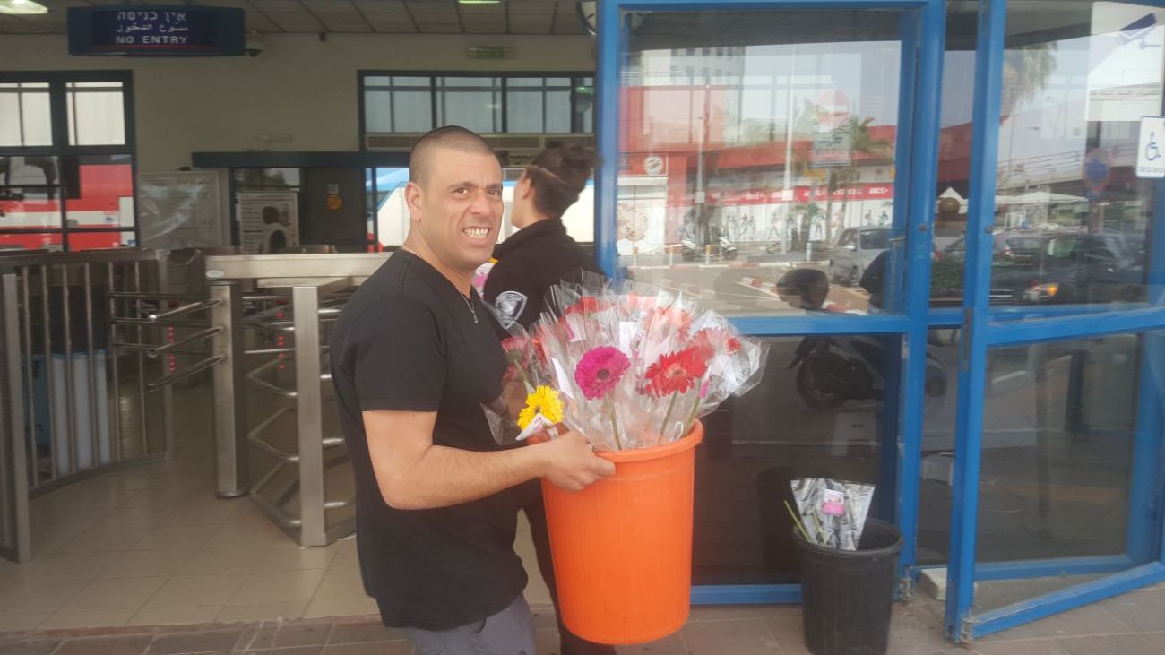 לא רק הנשים קיבלו פרחים: גם גברים ניצלו את ההזדמנות לקחת פרח לאשה שאיתם...