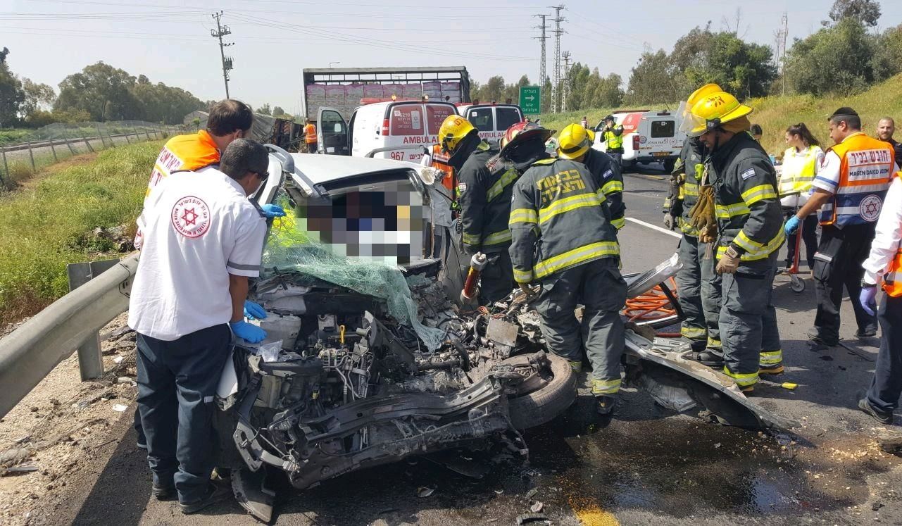 גבר כבן 50 נלכד ברכבו כשהוא סובל מחבלת ראש ומפגיעה קשה בגפיים. תוך כדי פעולות החילוץ המורכבות הענקנו לו טיפול רפואי שכלל הרדמה והנשמה ועצירת דימומים ופינינו אותו במצב קשה ולא יציב לבי"ח. נהג המשאית שמעוצמת התאונה התהפכה על צידה בשול הכביש נבדק ע"י הצוותים של מד"א בשטח ולא נזקק לפינוי לבית חולים."