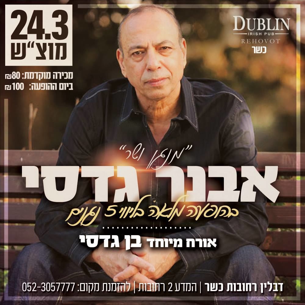 דאבלין רחובות ארחו במוצ"ש האחרון (24.3) את הזמר אבנר גדסי בהופעה מלאה בליווי 5 נגנים
