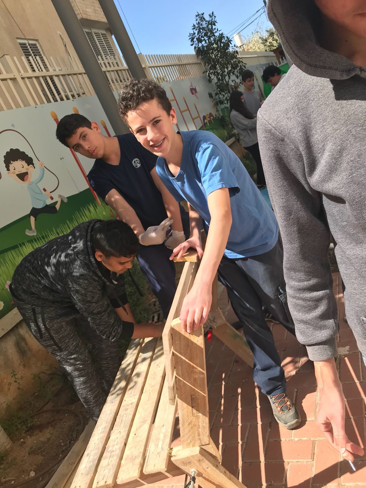 במסגרת שיתוף הפעולה קיבלו התלמידים משימת חקר בה, בדקו את צרכי הקהילה. לאחר מכן עברו לשלב המעשי בו בנו ספסלים, צבעו וקשטו את חצר המתנ"ס.