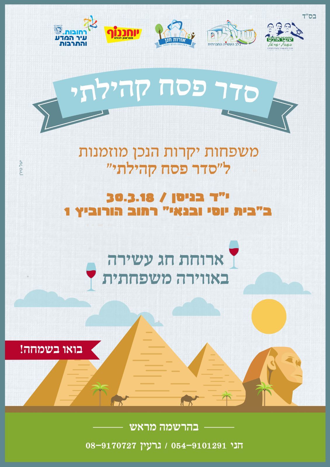 הסדר יתקיים ברחוב הורוביץ 1 ב"בית יוסי ובנאי". הרשמה מראש חובה