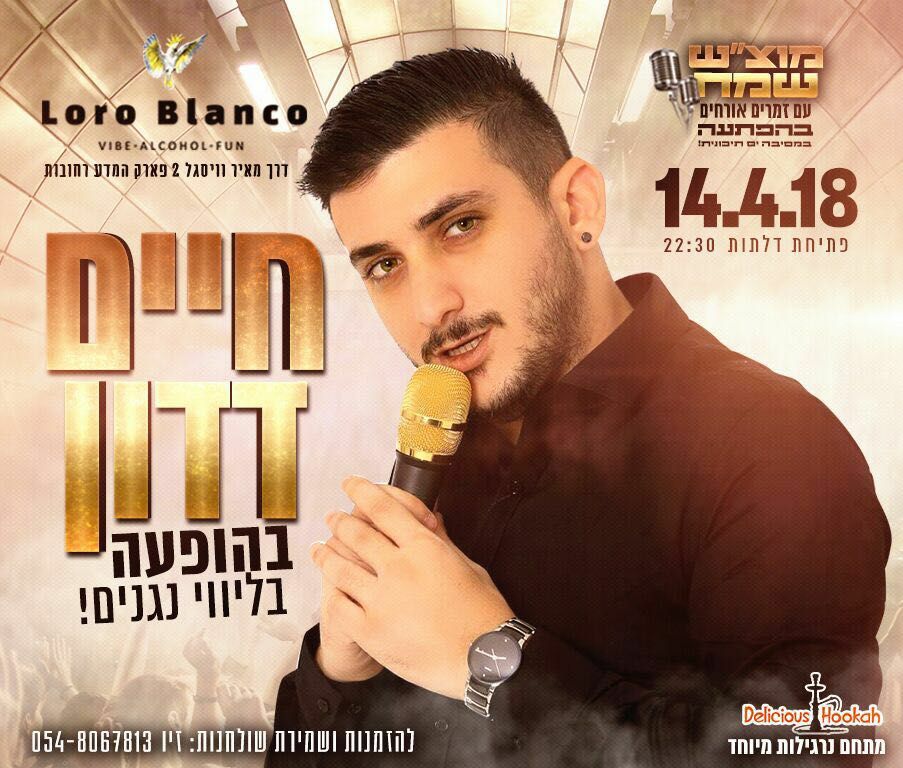 אחרי סופש חגיגי במיוחד בלורו בלאנקו הם ממשיכים לתכנן תוכניות לקראת סופ"ש אצמעות ומכריזים על הקמת מסיבה ישראלית לתפארת מדינת ישראל עם דוכני מזון ותפאורה חגיגית . בנוסף, לורו "מקנחים" את הסופ"ש בהופעה של הזמר חיים דדון במסגרת של מוצש live , ליין האמנים המתחלפים.