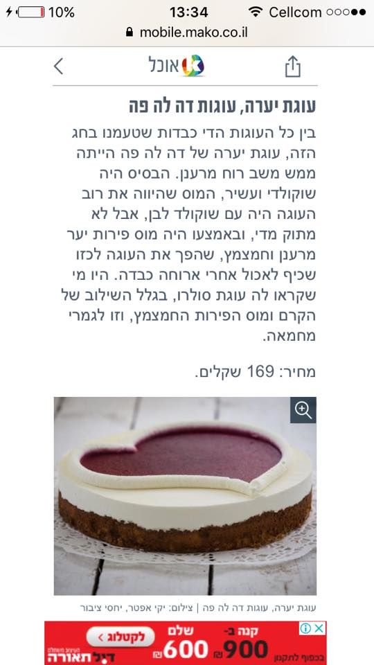 "לא נגעתי... וכן... התרגשתי! mako- ״בין כל העוגות הדי כבדות שטעמנו בחג הזה, עוגת יערה של דה לה פה הייתה ממש משב רוח מרענן! ״