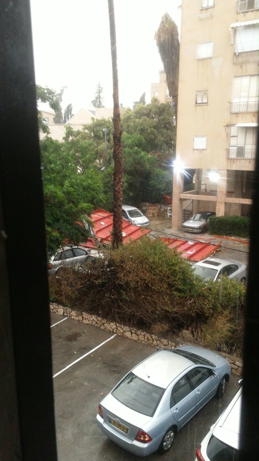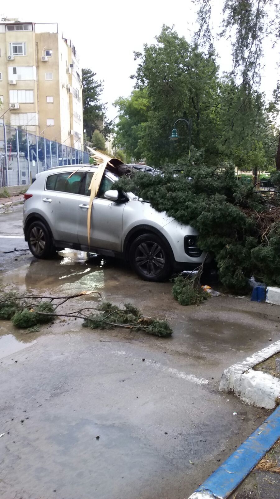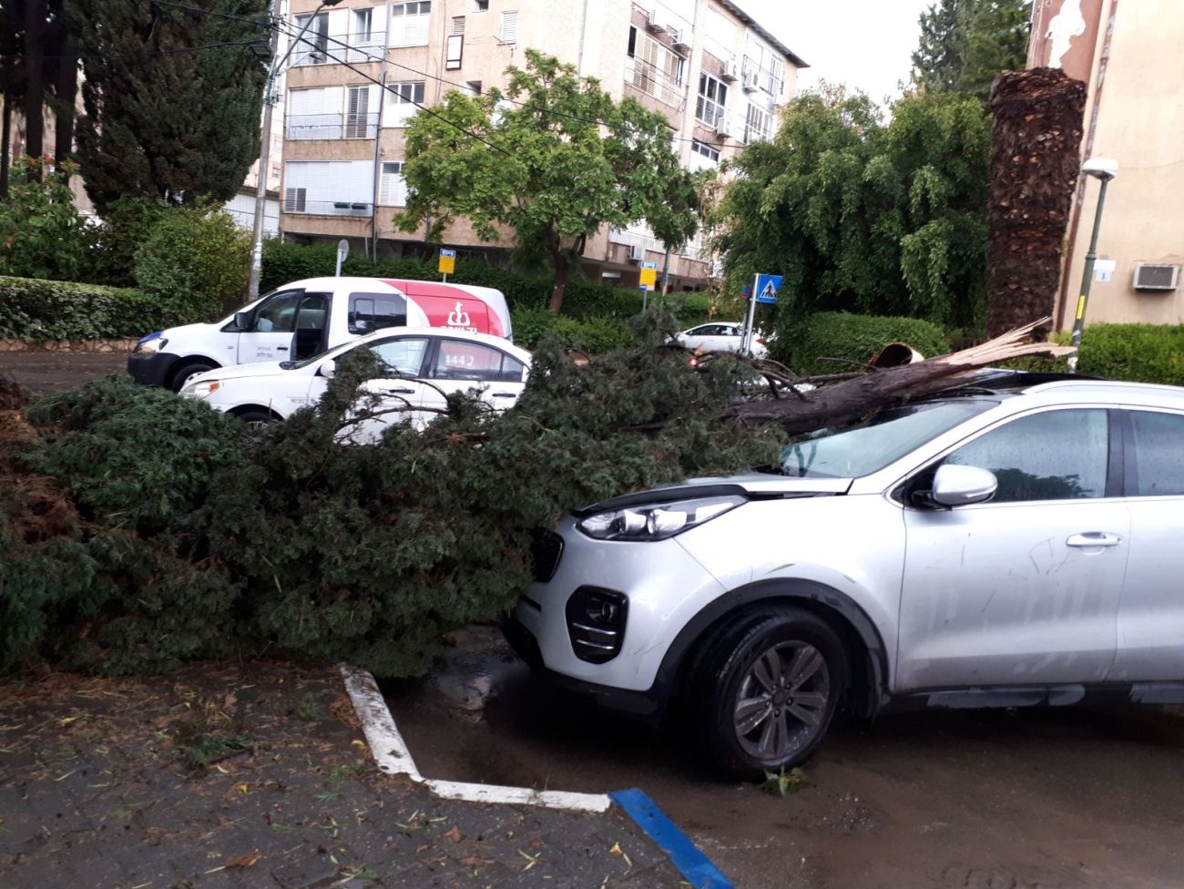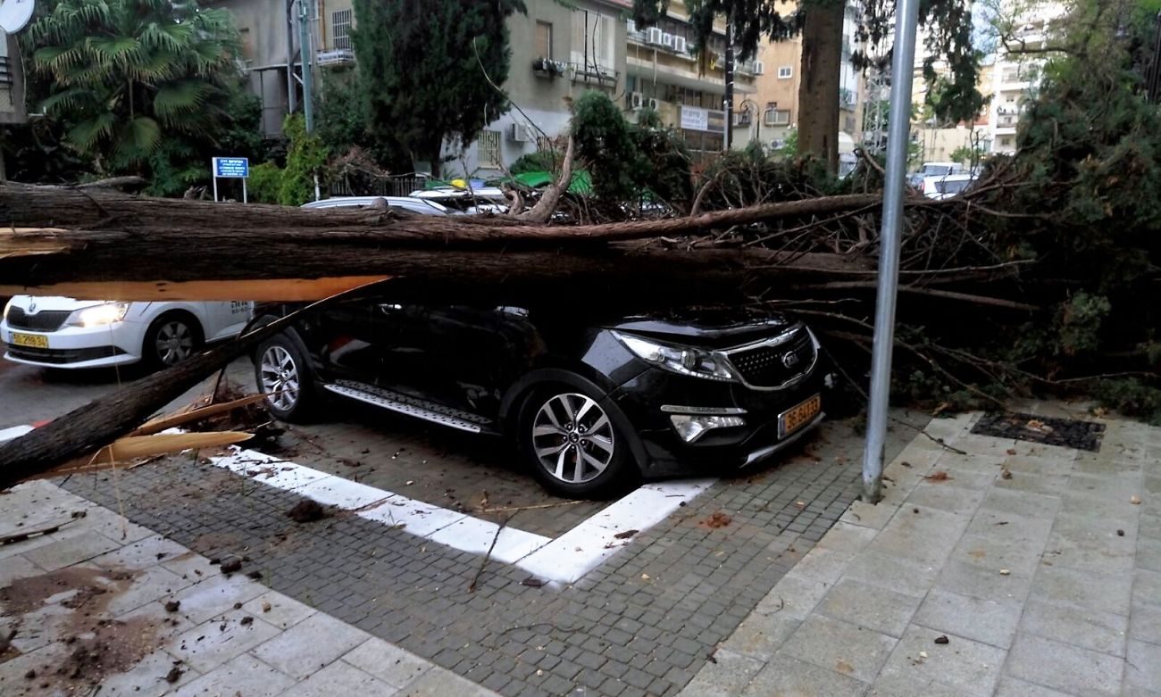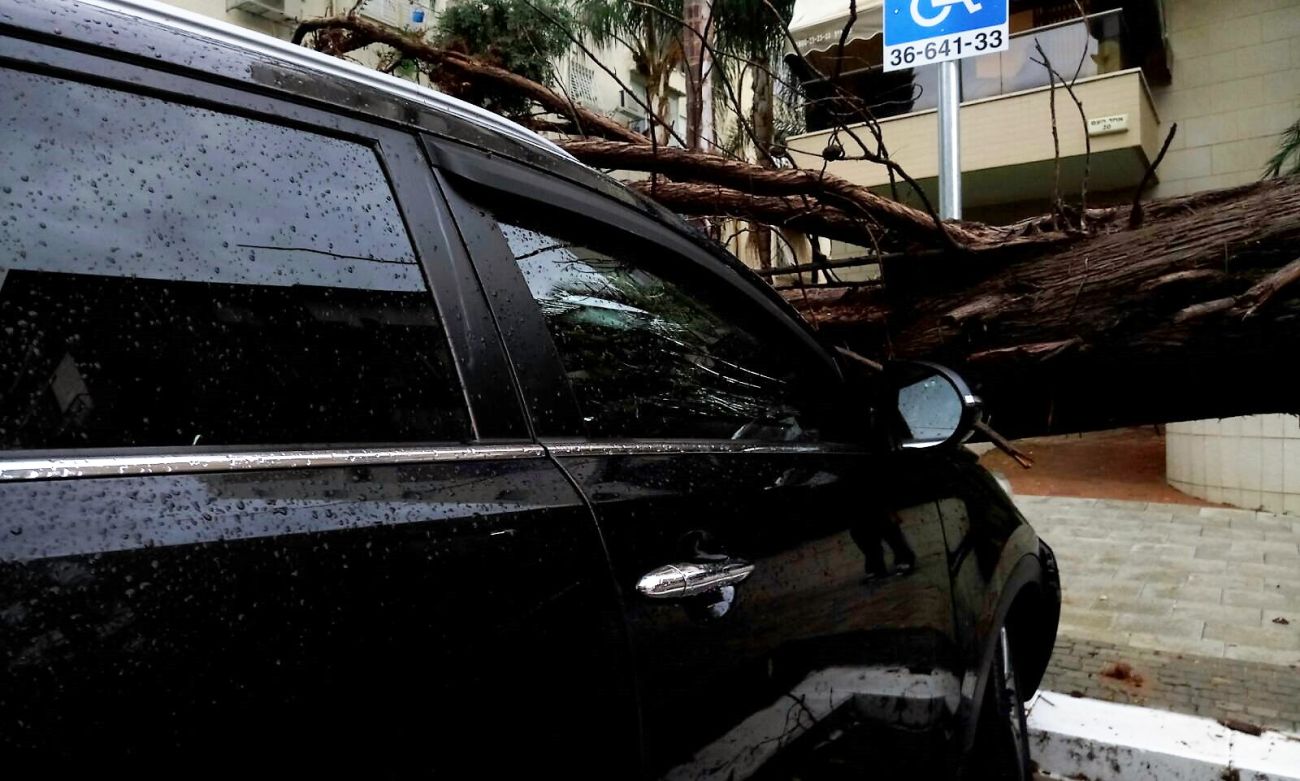 קריסת עץ על רכב ברחוב אחד העם - צילום משה פלדמן