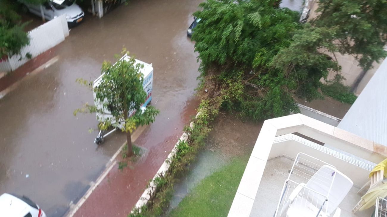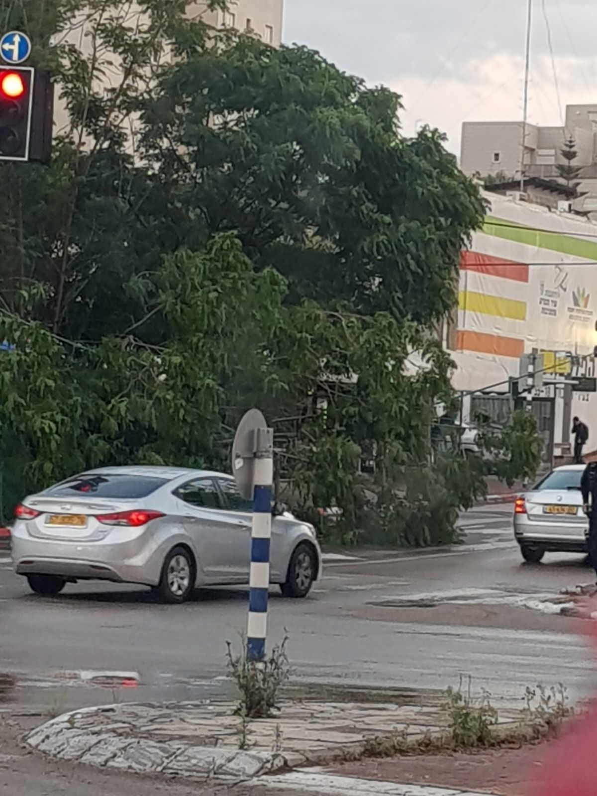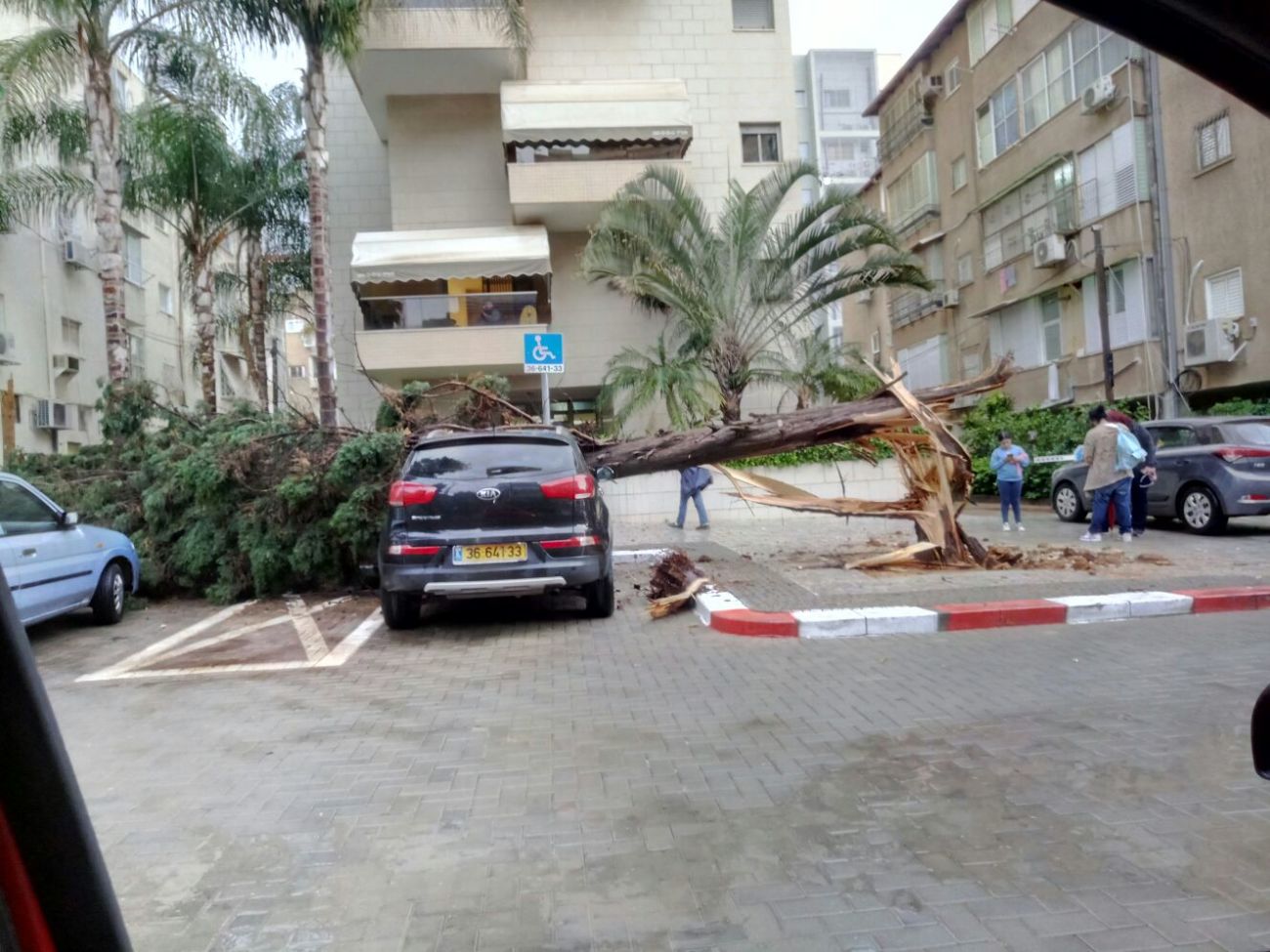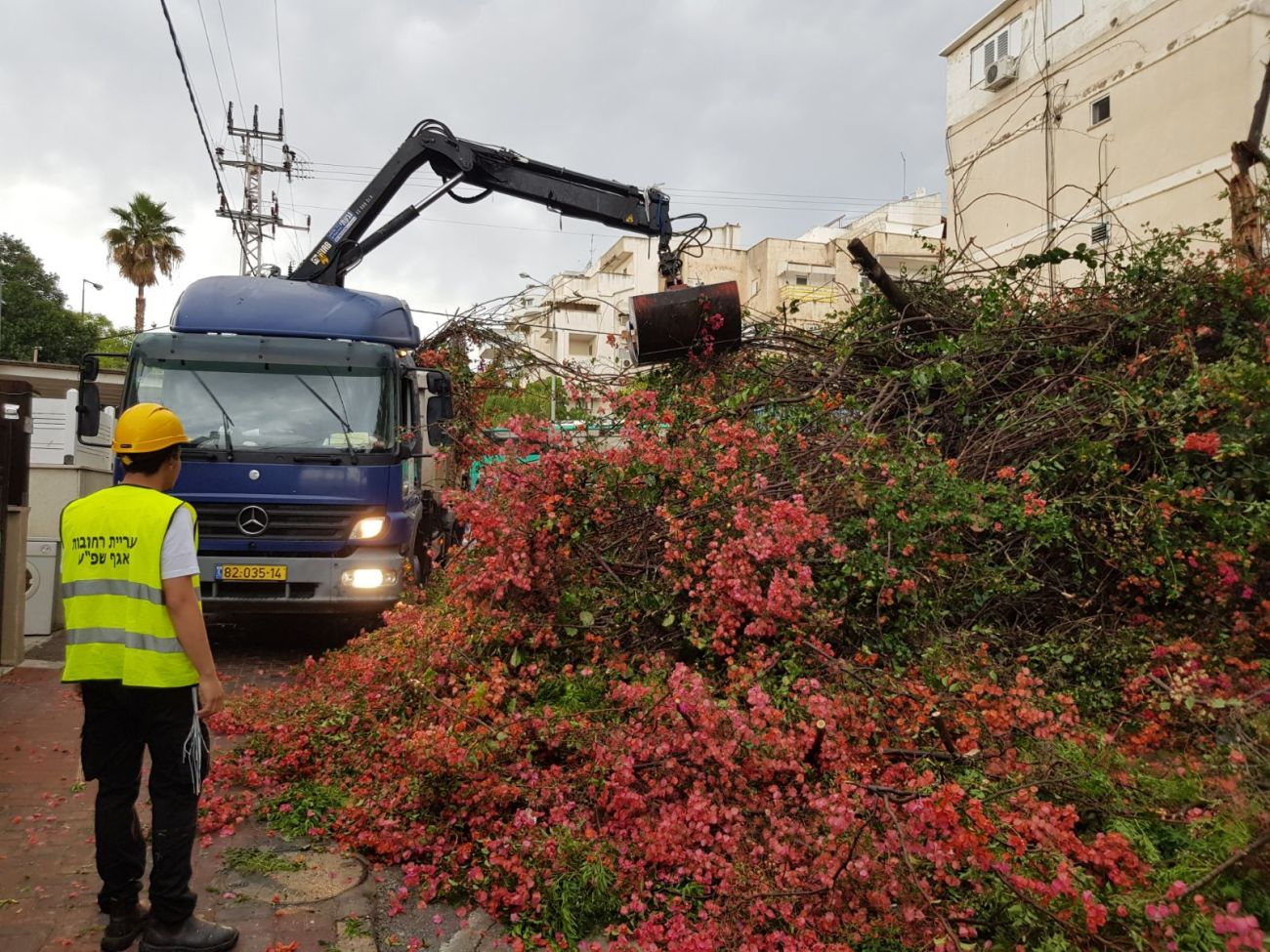 סרטון עובדי עיריית רחובות בפינוי עץ שקרס על רכב ברחוב ההסתדרות