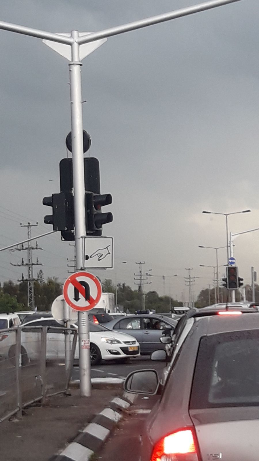 פקק בצומת בילו בעקבות קריסת רמזור - צילום משפחת פרץ
