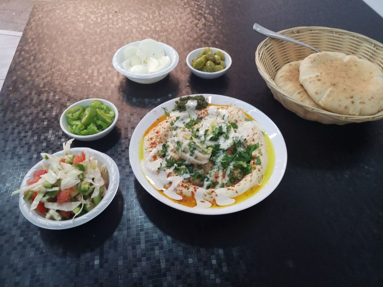 המנות מוגשות עם 2 פיתות, בצל, זיתים ופלפל חריף בצד
