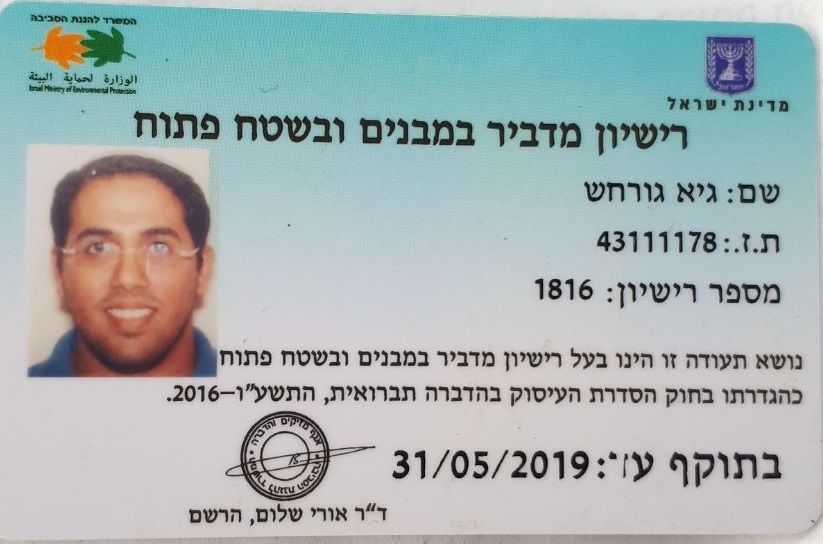 גיא גירחש רשיון מספר 1816 רשיון מדביר במבנים ובשטח פתוח