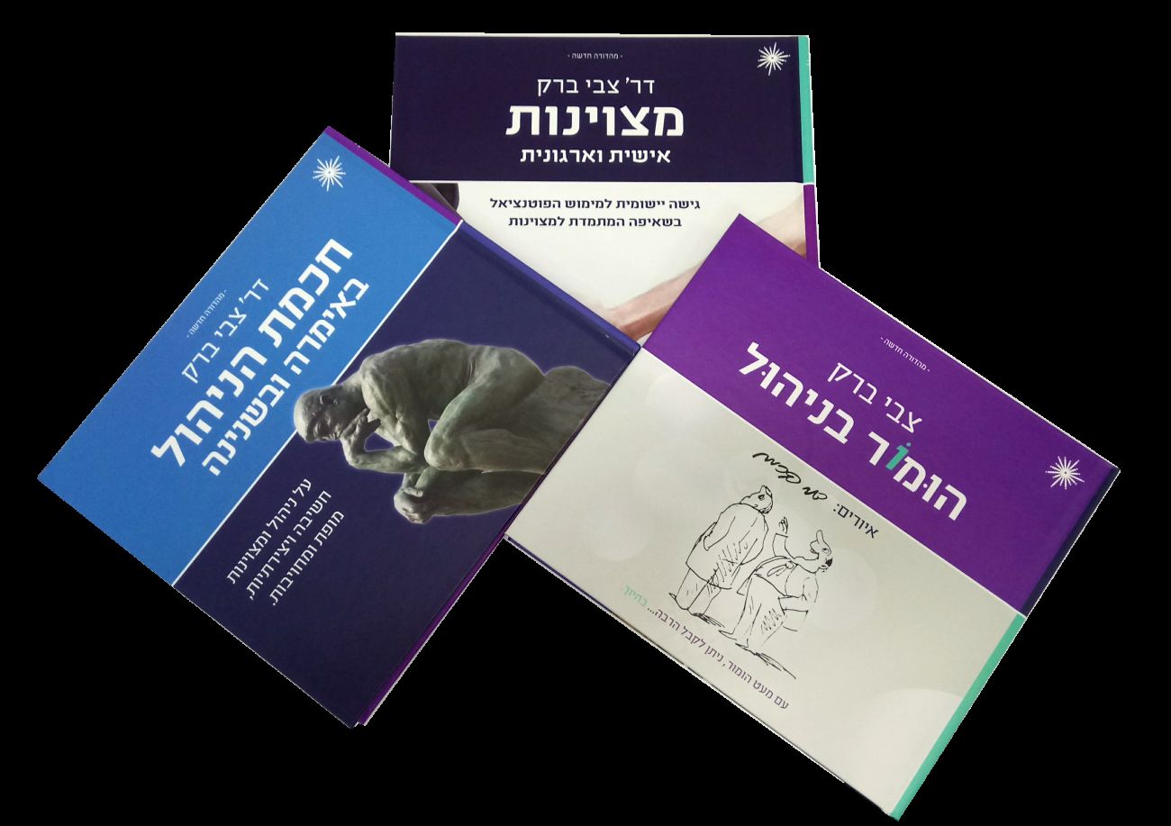 הסט מכיל את 3 ספריו של ד"ר צבי ברק: 1. חכמת הניהול באמרה ובשנינה. 2. הומור בניהול- 3. מצוינות אישית וארגונית