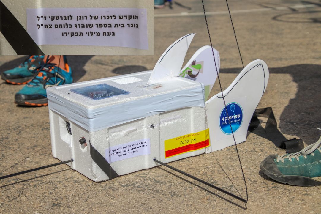 יום לפני השיגור המיועד נודע על דבר פטירתו של חלל צה"ל בוגר שפרינצק ,רונן לוברסקי ז"ל ובבית הספר הוחלט להקדיש את שיגור החללית לזכרו של החייל. במהלך מפגש השיגור שנערך בפני כל תלמידי בית הספר נשאה מנהלת בית הספר דברים לזכרו של רונן ואף הוסיפה לחללית הקדשה מיוחדת בנושא וסרט שחור לצידה.