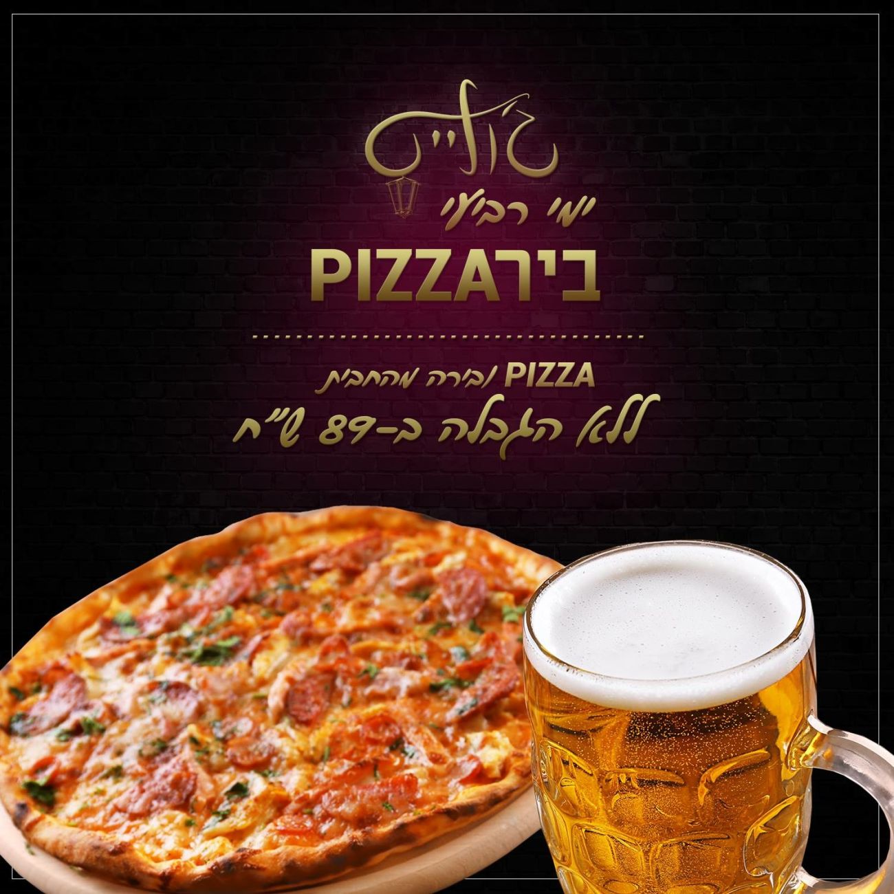 רביעי- פיצה+בירה ללא תחתית: הבליינים מוזמנים לאכול פיצה ולשתות כפי יכולתם ב- 89₪!