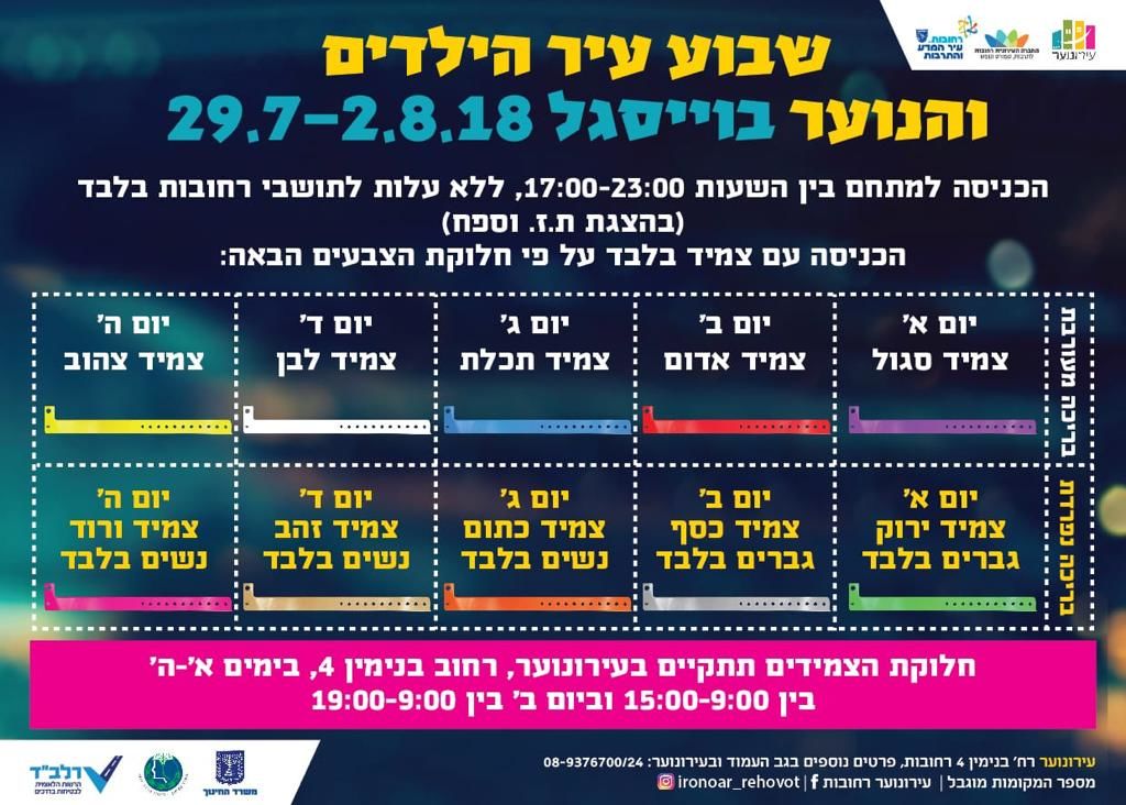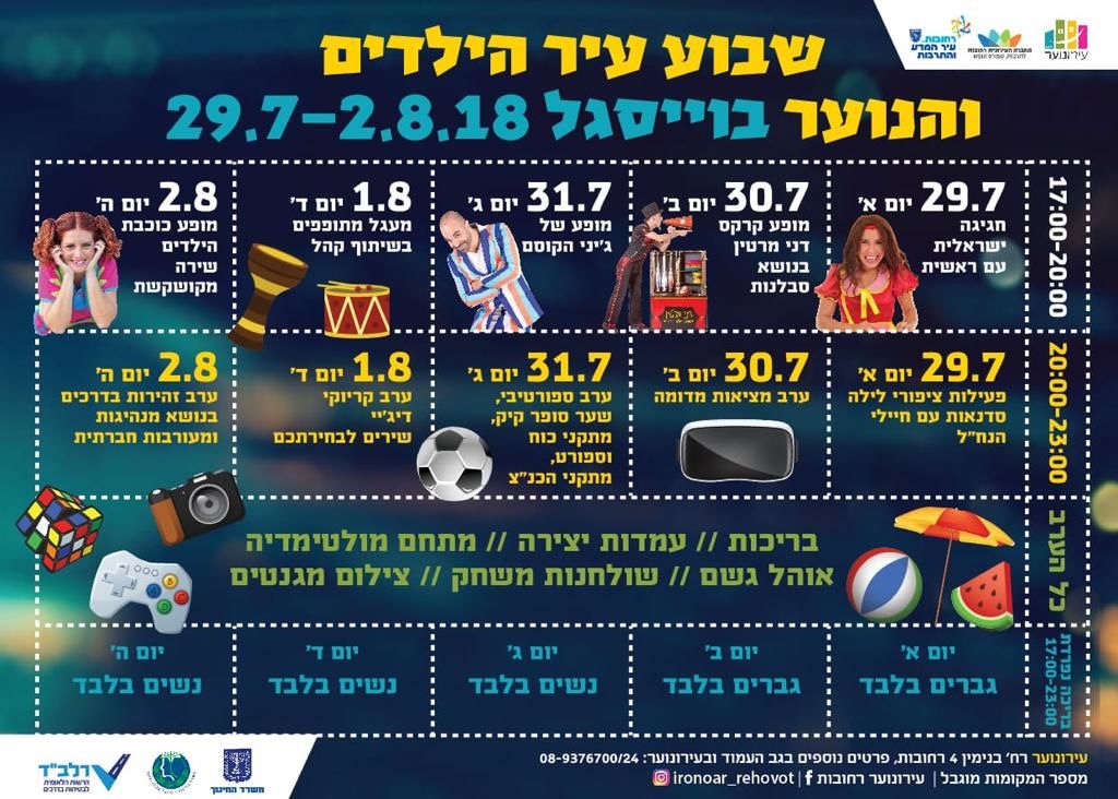 להלן כל האירועים לשבוע עיר הנוער והילדים