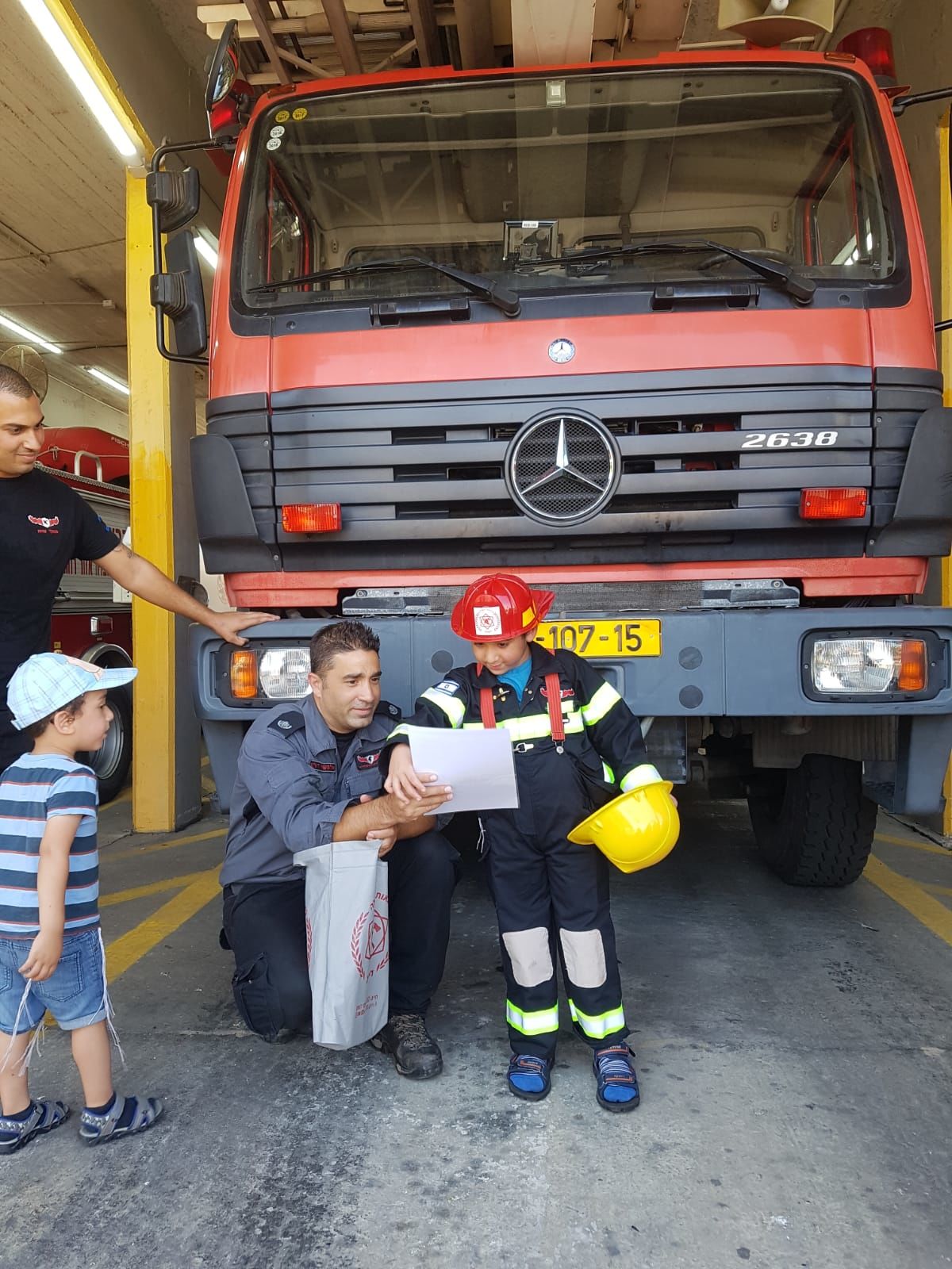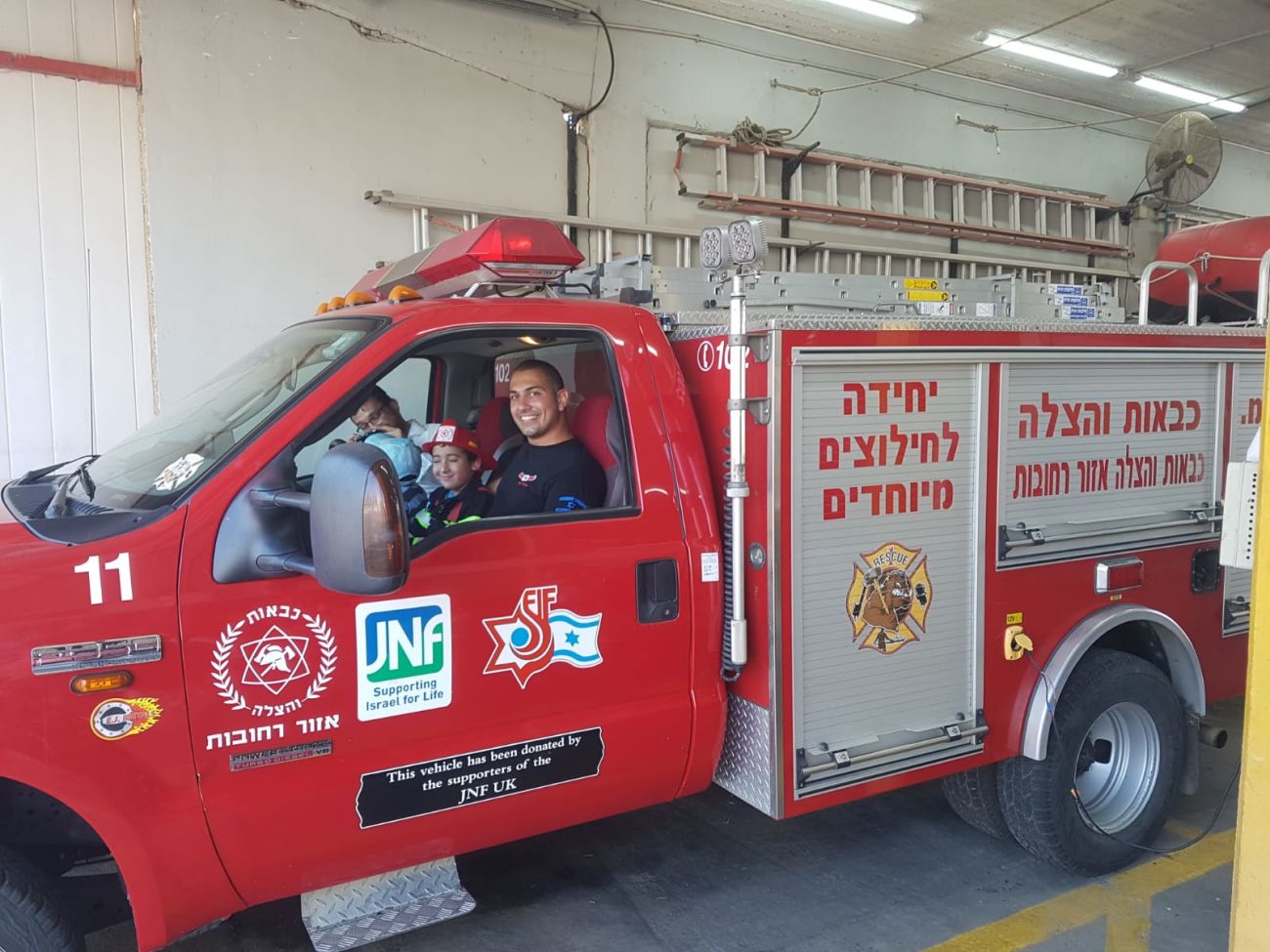 בתחנת כיבוי האש קיבלו את חזקי לוחמי האש הלבישו אותו כלוחם אש והציגו בפניו את יכולות רכבי החירום ובין היתר זכה חזקי לעלות על מנוף הגבהים לכיבוי אש.