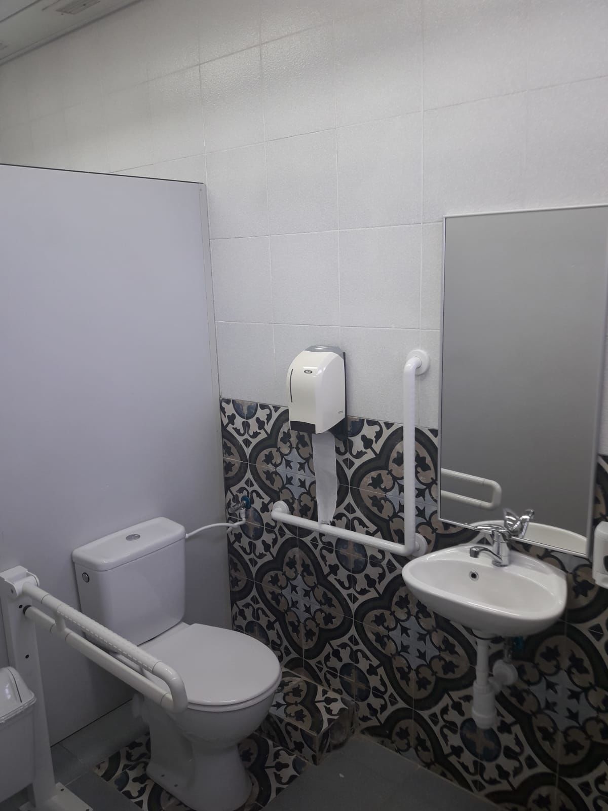 "בתוך המבנה שופצו השירותים, נבנו שירותי נכים המאפשרים כניסה עם כיסא גלגלים ובתוך האולם הוספו מעקות בטיחות, מאחזים וכן, מעקה עליה לבמה במידה ויש צורך בעזרה לעליה לבמה. בנוסף, הוצאנו 2 כסאות מהשורה הראשונה המאפשרות מקום ישיבה נוח לבעלי כסאות גלגלים".