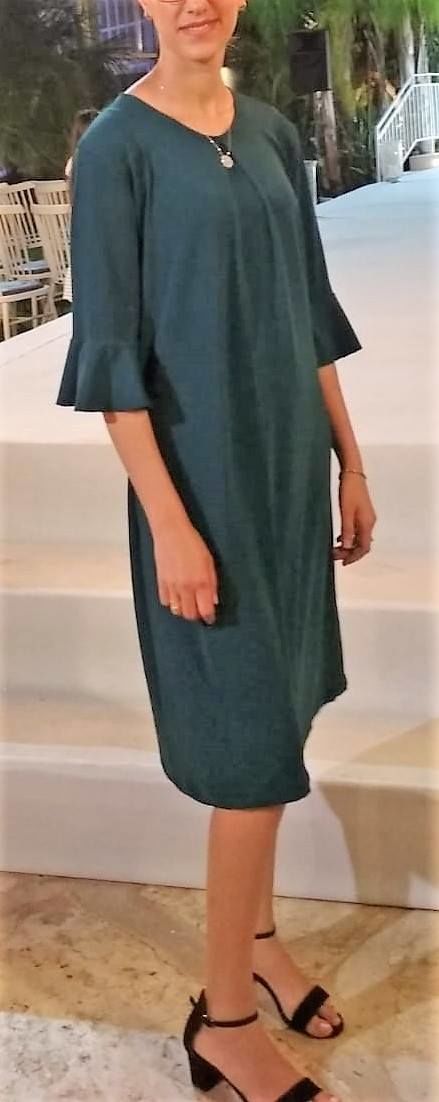 בתה של רחל אדם הוזמנה לחתונה של חברה מאוד קרובה. היא רכשה שמלה לאירוע וחשכו עיניה כשקיצרו את השמלה יותר מאשר שבקשה. ניסו להוסיף באורך אך זה לא היה מוצלח. היא הייתה מאוד מאוכזבת. היא ידעה שאימא התחילה קורס תפירה ותדמיתנות בשיטת AB אך לא תיארה לעצמה שבזמן כל כך קצר היא תוכל גם לתפור שמלה לאירוע. רחל מצאה שארית בד ב-10 שקלים למטר, שרטטה את הגזרה עם סרגלי AB, גזרה ותפרה והרי לכם התוצאה המרהיבה בתמונות המצורפות.