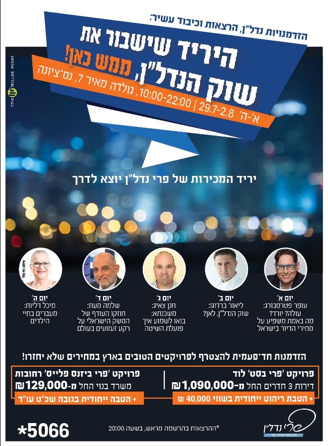 החל מהיום ראשון 29/7 ועד יום חמישי 2/8 יתקיים בפארק המדע יריד המכירות השנתי של אלדד פרי נדל"ן הכולל את בניין המשרדים אשר ייבנה במתחם הסטודנטים הגדול ברחובות ופרויקט הדירות בלוד