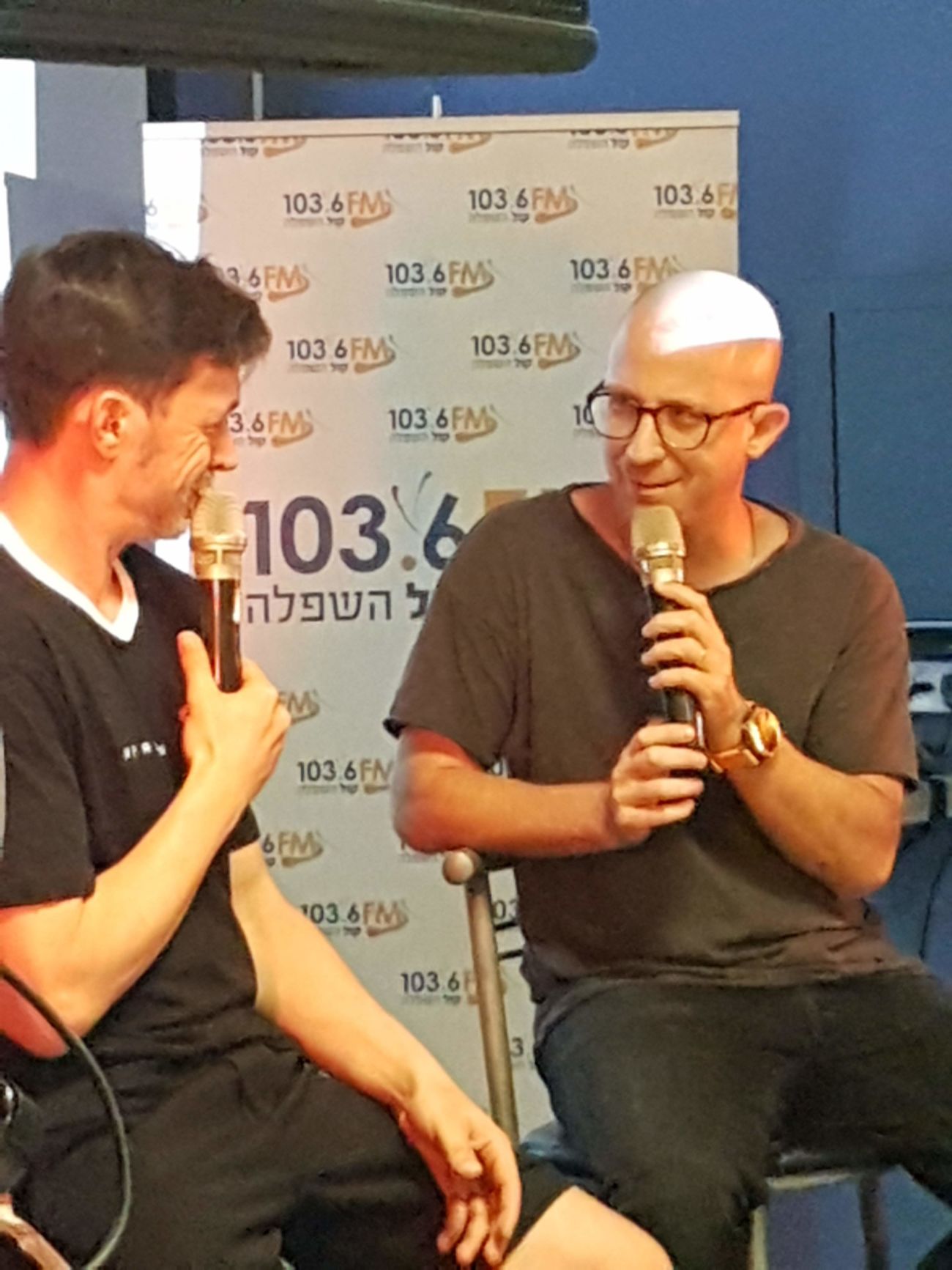 הראשון מבין המפגשים היה עם שרון טייכר וערן זרחוביץ', שדרני רדיו תל אביב, כותבים ושחקנים ב"ארץ נהדרת".