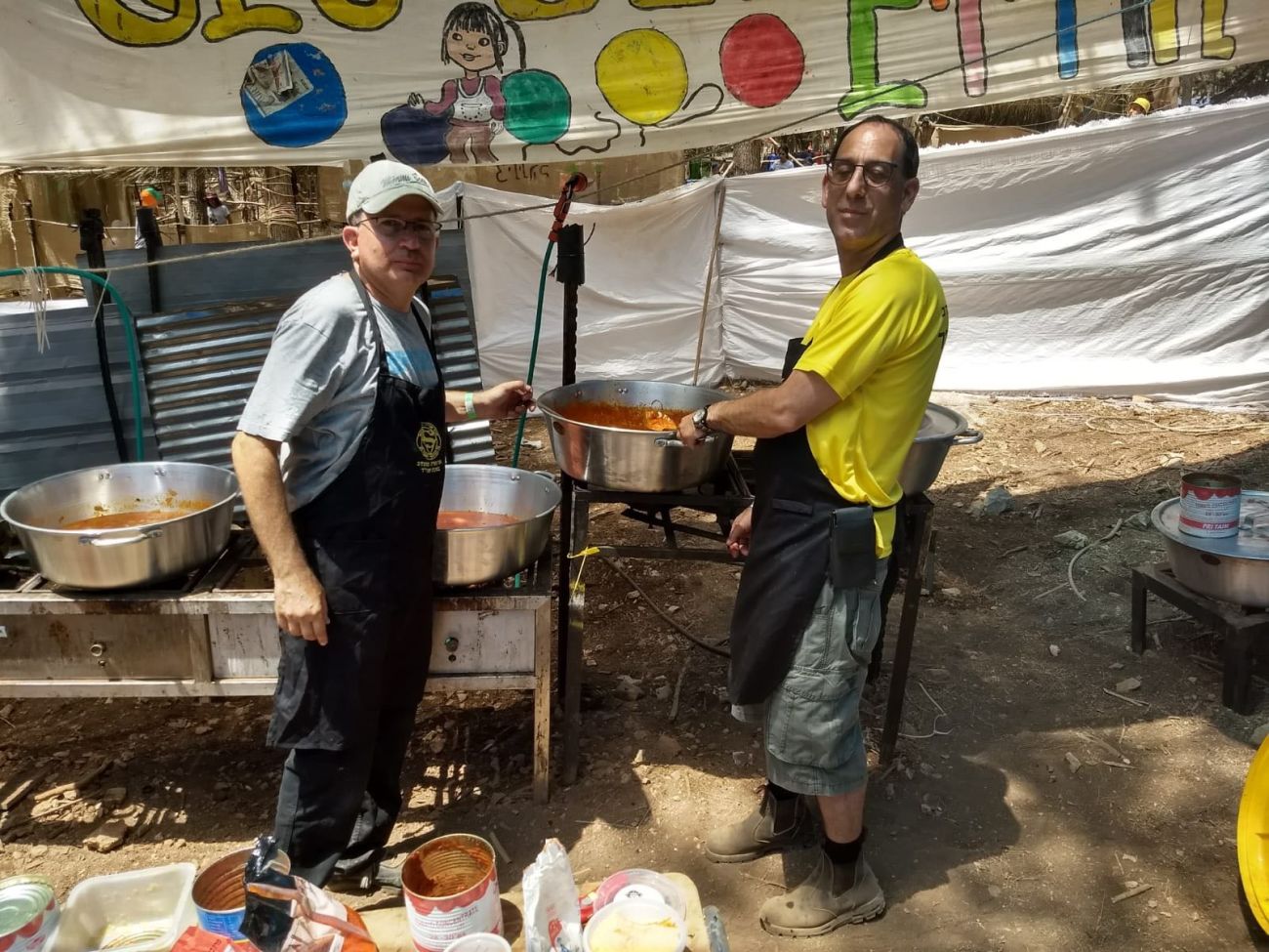 מזהים את 2 הטבחים???. זוהר בלום ואבי קינד ממשיכים במסורת לבשל עם הורים נוספים לילדי תנועת הצופים הנמצאים במחנה קיץ בצפון