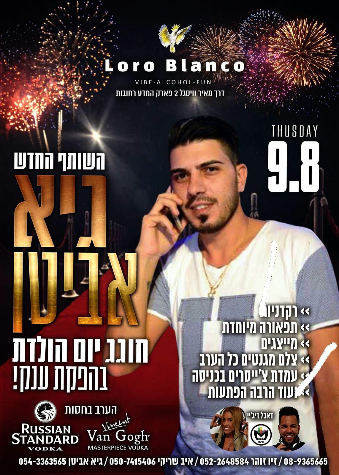 חגיגות יום ההולדת של השותף החדש גיא אביטן במועדון ה'לורו בלאנקו וגם הופעה של הזמר אביעד סהר (דרך מאיר וויסגל 2 פארק המדע)