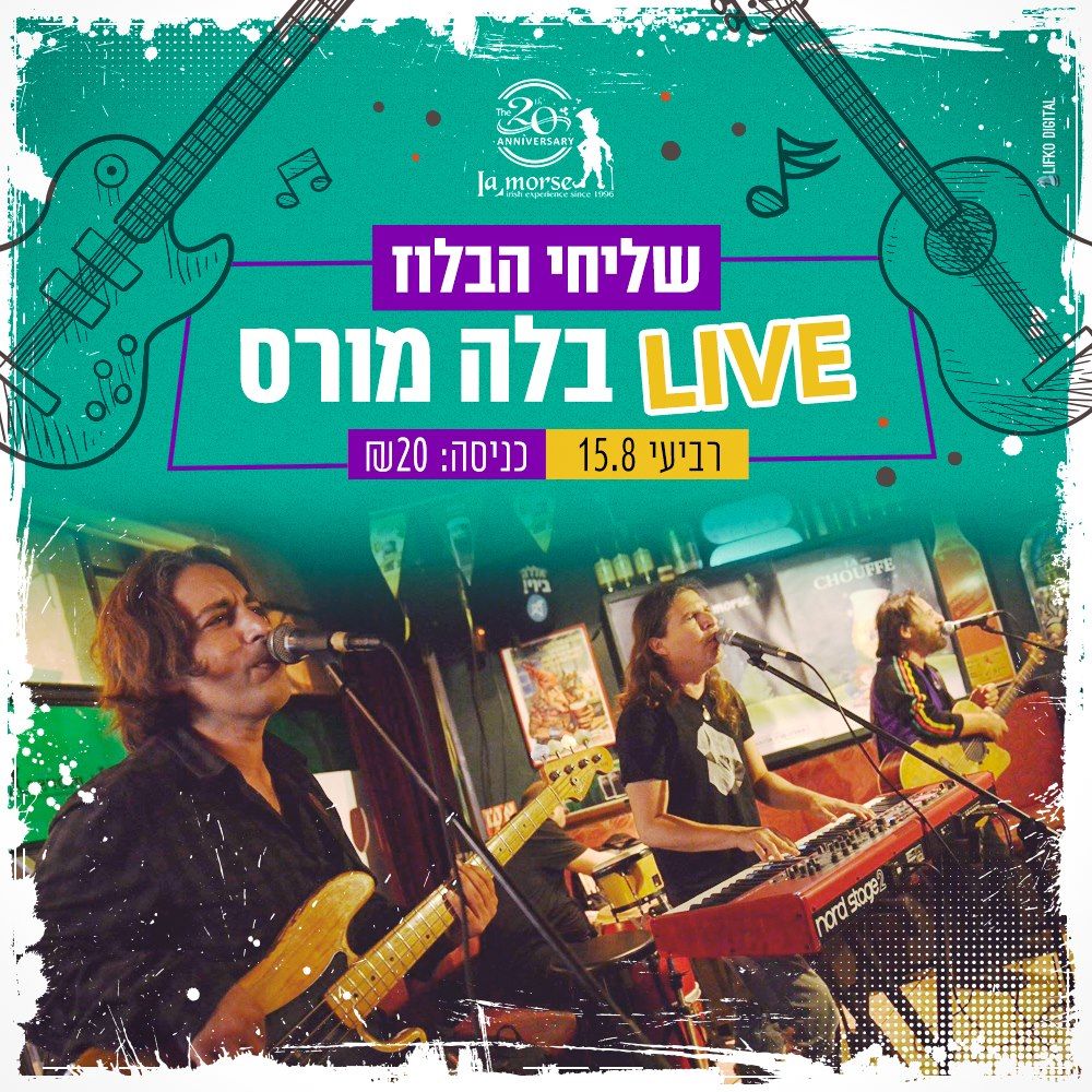 ברביעי הבא 15.8 החל מהשעה 20:00 תתקיים בפאב ה'לה מורס' הופעה של להקת שליחי הבלוז בערב שכולו רוקנרול מהסיקטיז והסבנטיז, עלות כרטיס: 20 ש"ח ניתן להזמין כרטיסים בטלפון 0542154450 – שחר