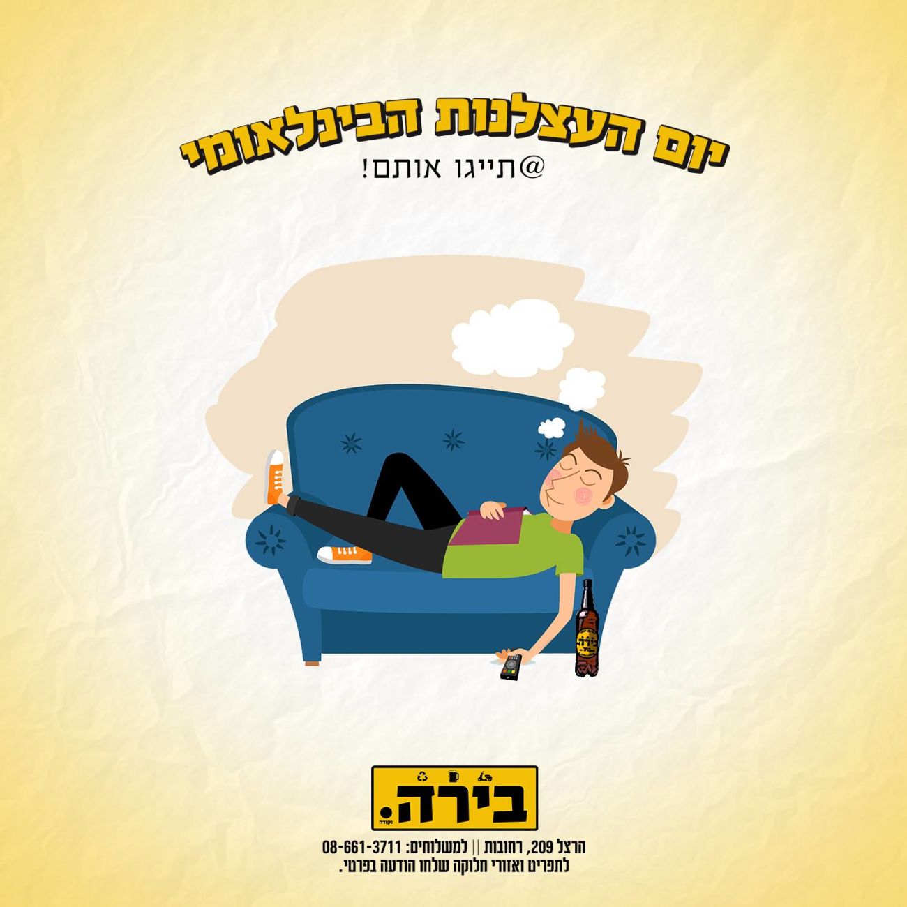 יום העצלנות הבין לאומי בבר ה'בירה נקודה.' (הרצל 209)