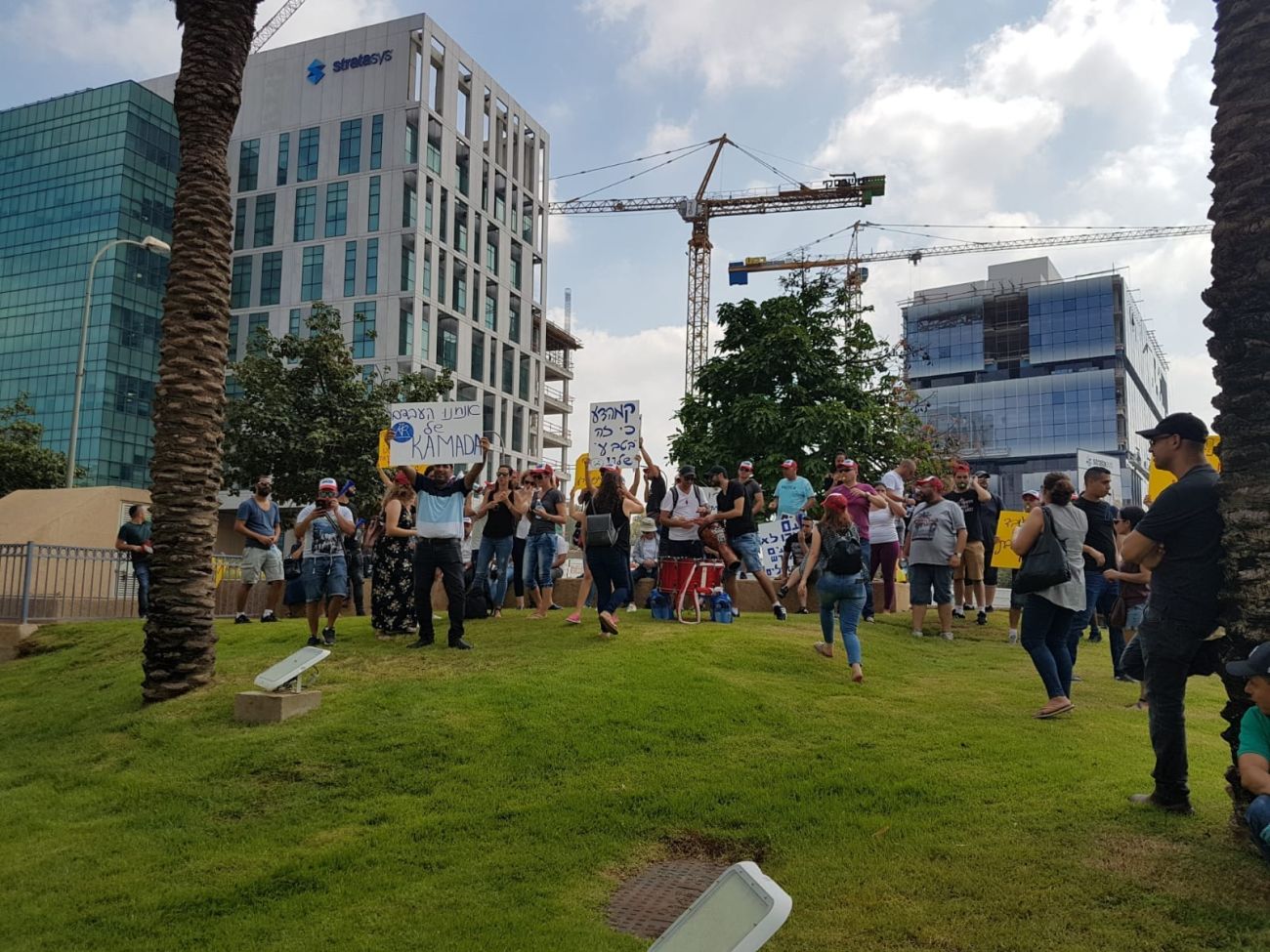 יום ראשון 12/8 שעה 11:30. עשרות עובדי חברת התרופות קמהדע מפגינים ברגעים אלו מול מטה החברה בפארק המדע ברחובות.
