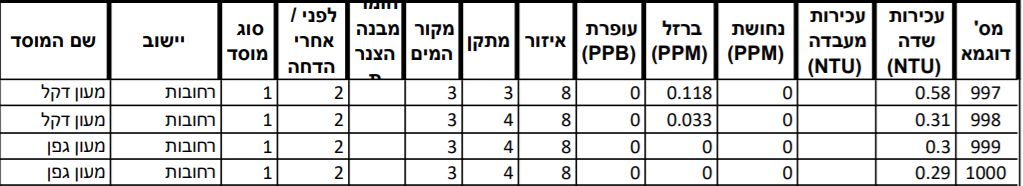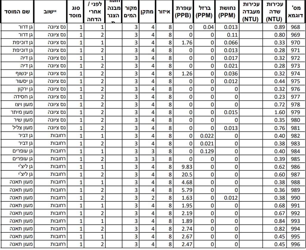המים נבדקו במתקנים: קולר, בכיורים/חדר המורים ובמטבח.
